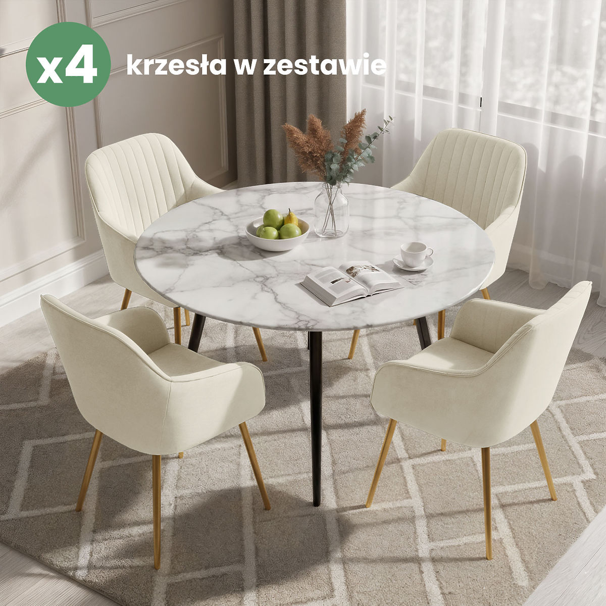 Lukahome.fr » salle à manger et cuisine / Salle à manger chaise / 4x Chaise en velours rembourrée avec surpiqûres Crème FLORENCE Pieds dorés