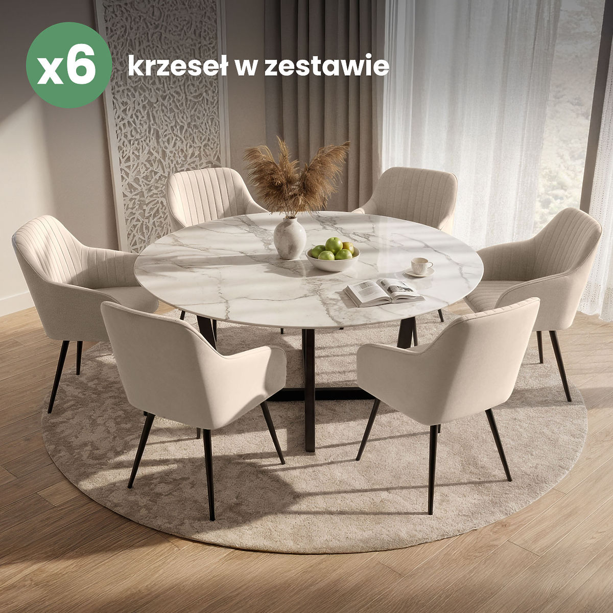 Lukahome.fr » salle à manger et cuisine / Salle à manger chaise / 6x Chaise en velours rembourrée avec surpiqûres Beige FLORENCE Pieds noirs