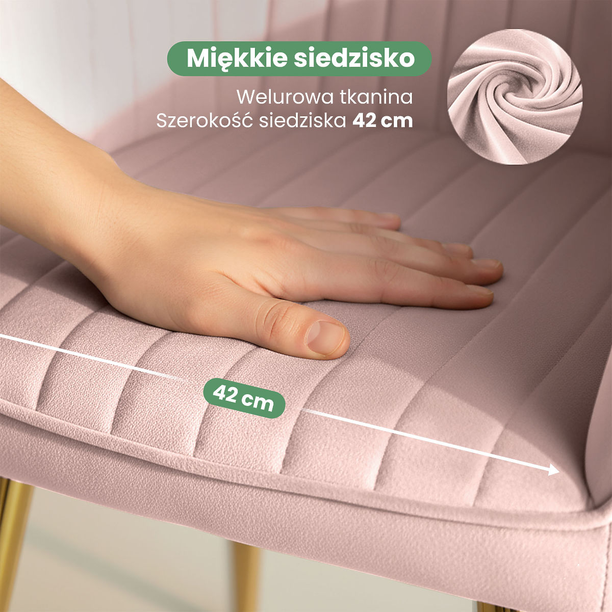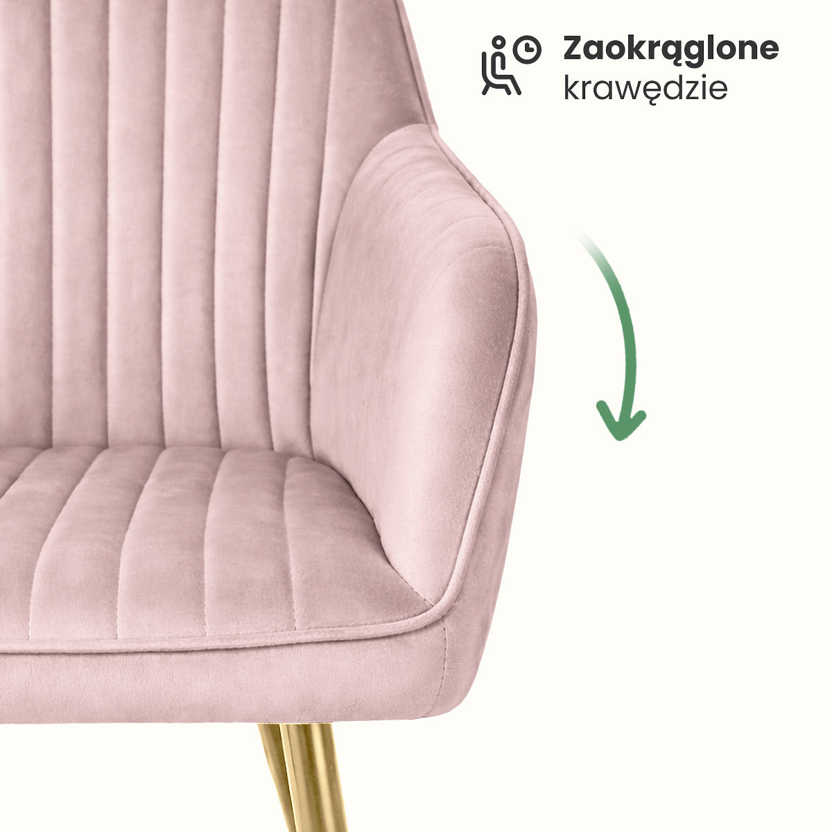 Chaise en velours FLORENCE avec pieds dorés et surpiqûres verticales. .. plus
