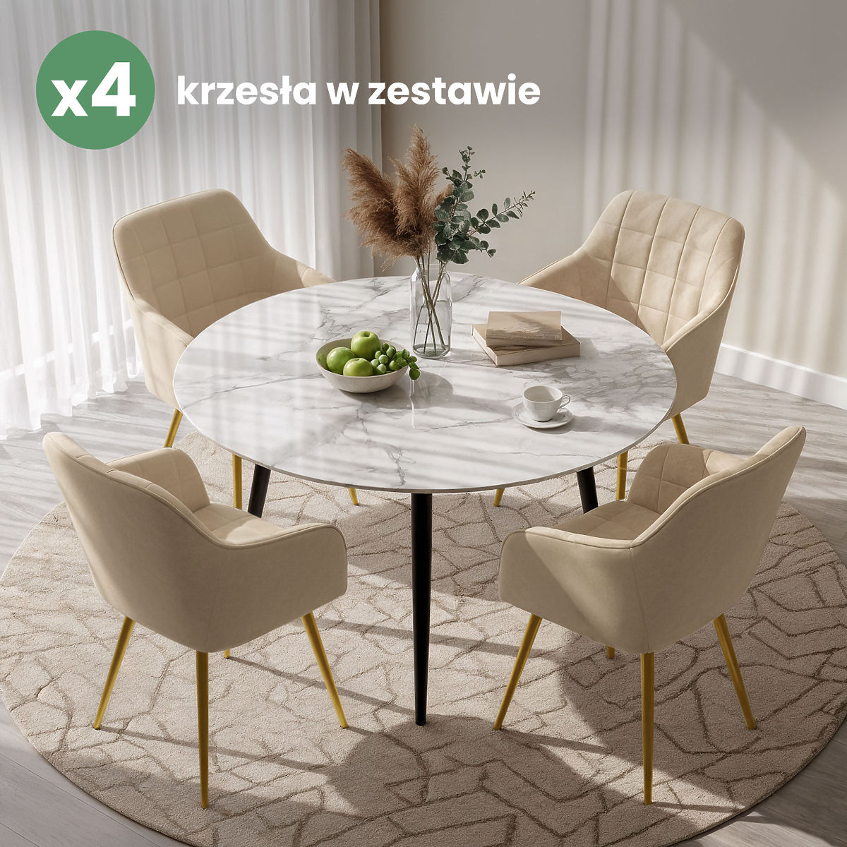 Lukahome.fr » salle à manger et cuisine / Salle à manger chaise / 4x Chaise rembourrée avec surpiqûres carrées Beige LUXANO Pieds dorés