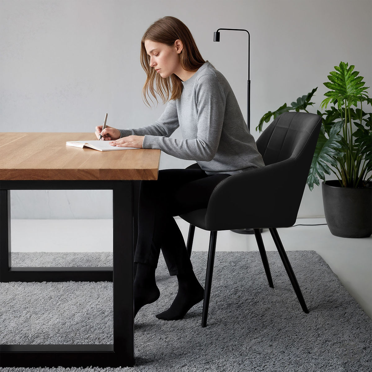 Lukahome.fr » salle à manger et cuisine / Salle à manger chaise / 4x Chaise rembourrée avec surpiqûres carrées Noire LUXANO Pieds noirs