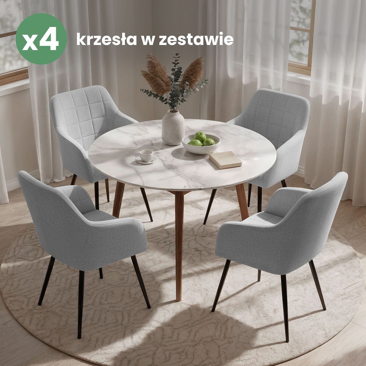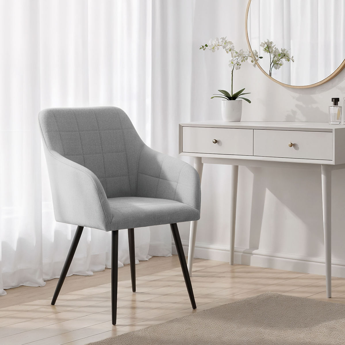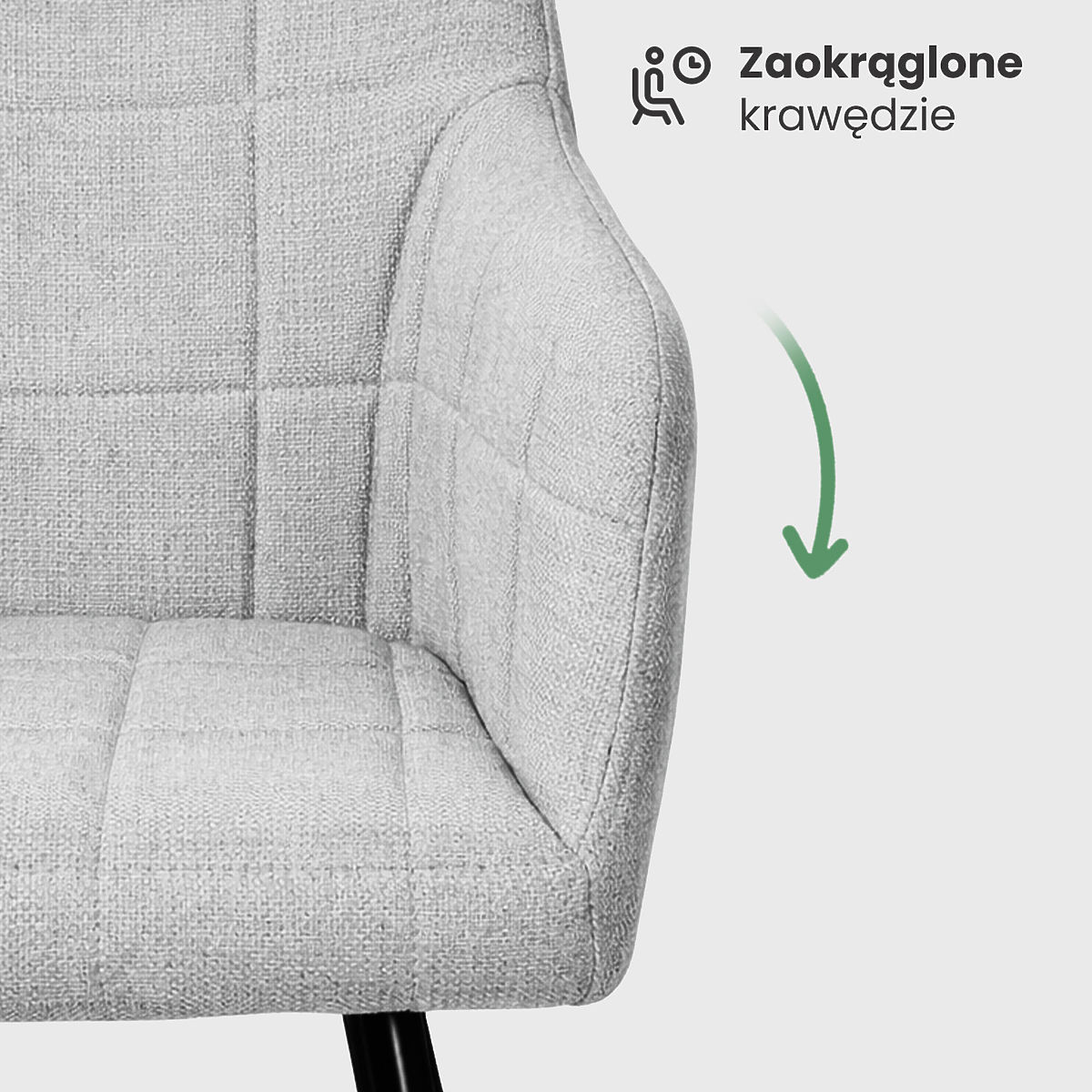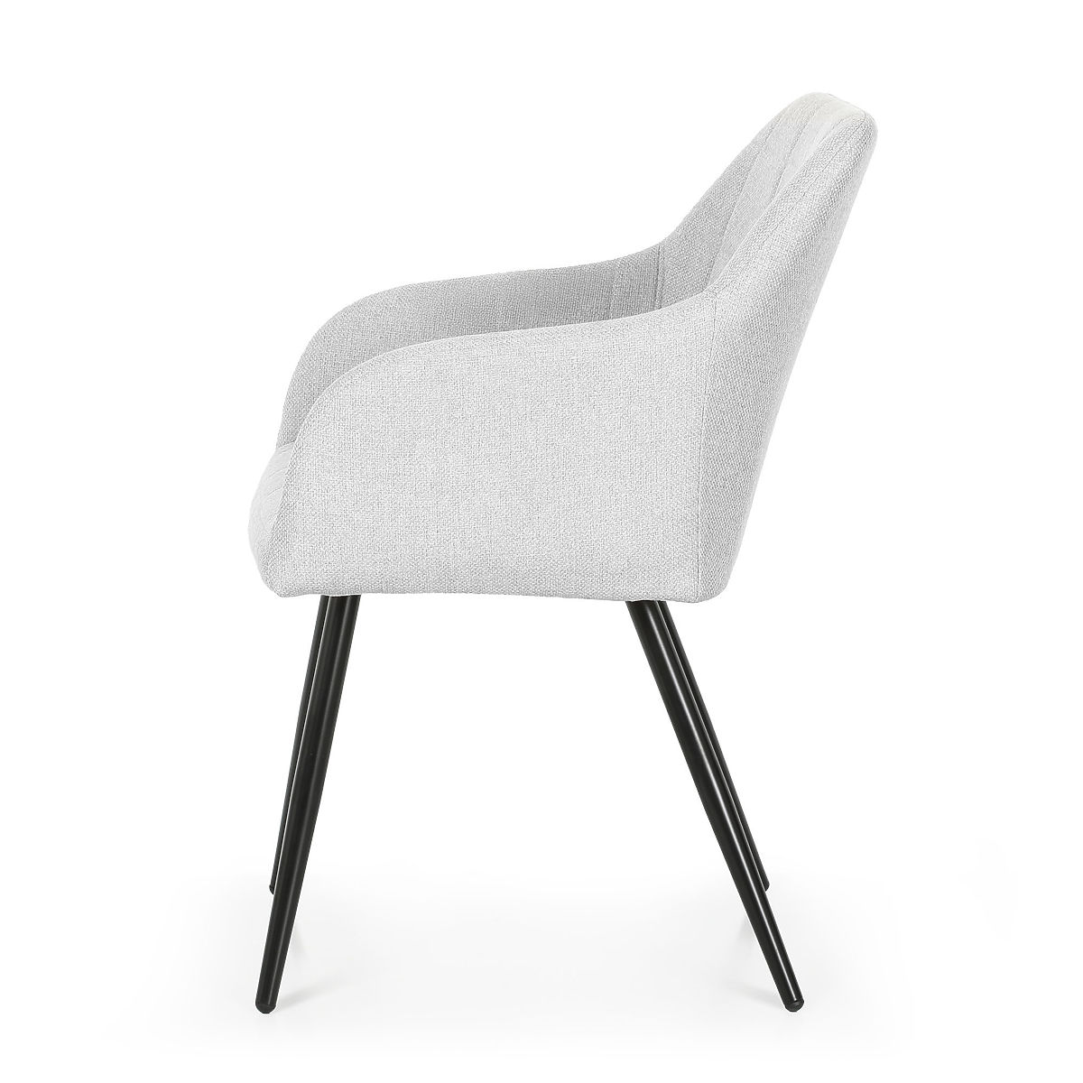 Lukahome.fr » salle à manger et cuisine / Salle à manger chaise / 4x Chaise rembourrée avec surpiqûres carrées Gris Clair LUXANO Pieds noirs tissu Lumos