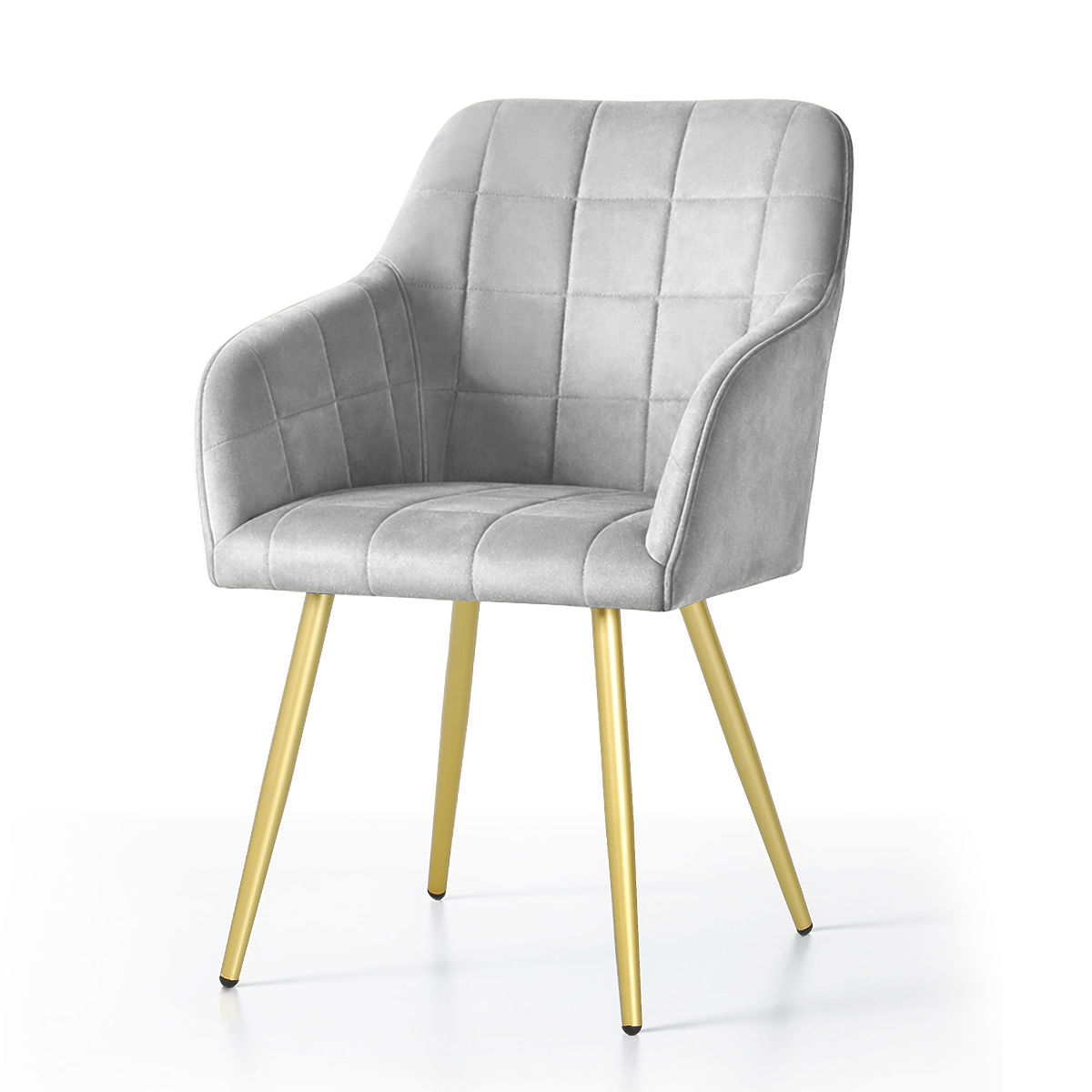 Lukahome.fr » salle à manger et cuisine / Salle à manger chaise / 4x Chaise rembourrée avec surpiqûres carrées Grise LUXANO Pieds dorés