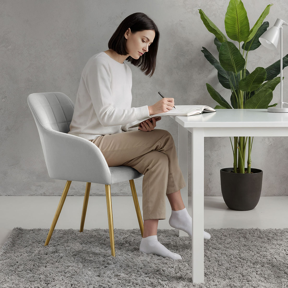 Les chaises rembourrées allient esthétique et confort d'utilisation et s'adaptent bien à différents styles d'intérieurs. Leur forme universelle les rend adaptées à la salle à manger, au salon ou à l'espace bureau. Disponibles en deux variantes de matériaux – en tissu Lumos ou en velours.