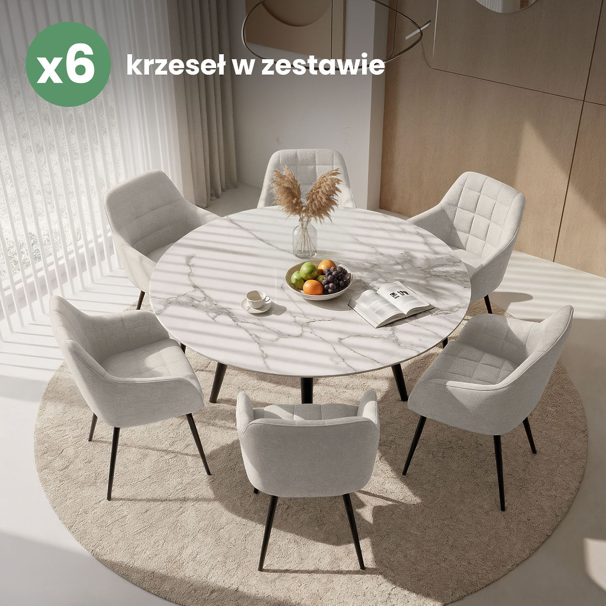 Lukahome.fr » salle à manger et cuisine / Salle à manger chaise / 6x Chaise rembourrée avec surpiqûres carrées Crème LUXANO Pieds noirs tissu Lumos