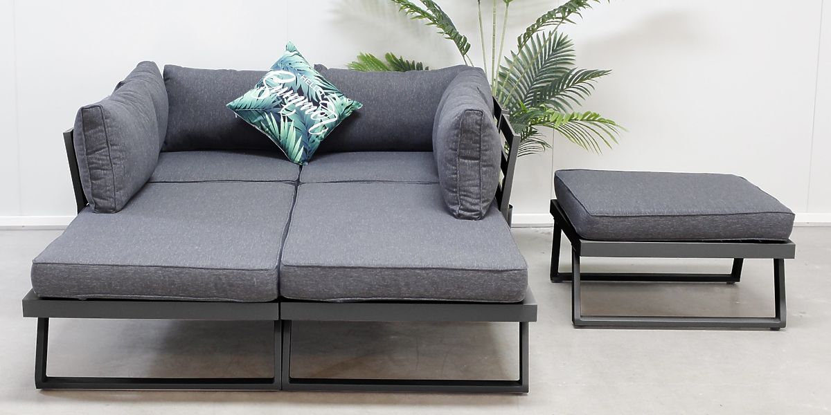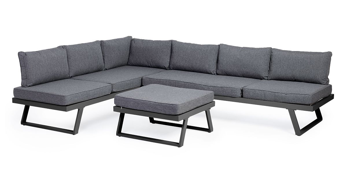 Lukahome.fr » mobilier de jardin / Canapés de jardin / Canapé d'angle de jardin avec table Lafoole Lunge, spun-poly, gris foncé