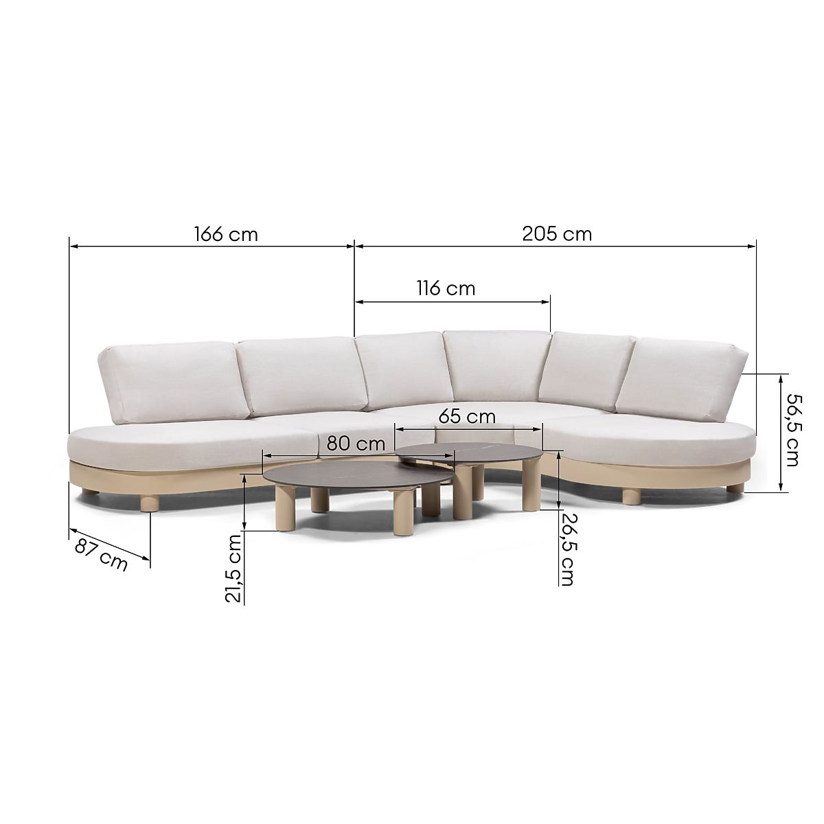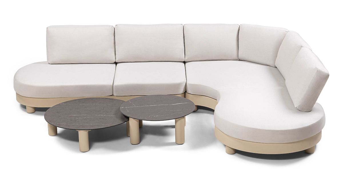Lukahome.fr » mobilier de jardin / Canapés de jardin / Canapé d'angle de jardin avec 2 tables Santa Ana, aluminium, beige, décoration marbre, formes arrond