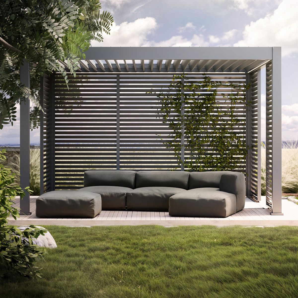 Canapé d'angle modulaire de jardin Vacuum en tissu gris imperméable. .. plus