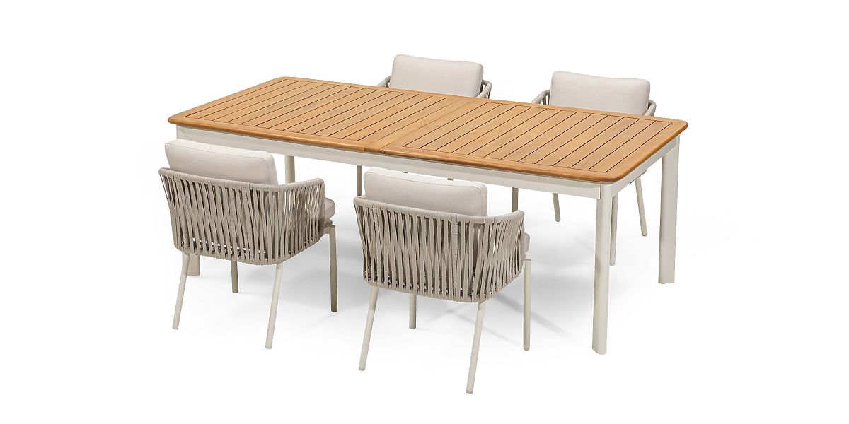 Lukahome.fr » mobilier de jardin / ensembles de jardin / Ensemble de jardin Porticato, table extensible 211-300 cm + 4 chaises, bois d'acacia FSC, aspect tec