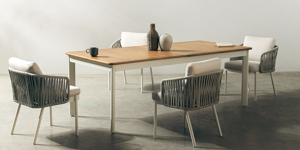 Ensemble de jardin en bois d'acacia avec table extensible et 4 chaises. .. plus