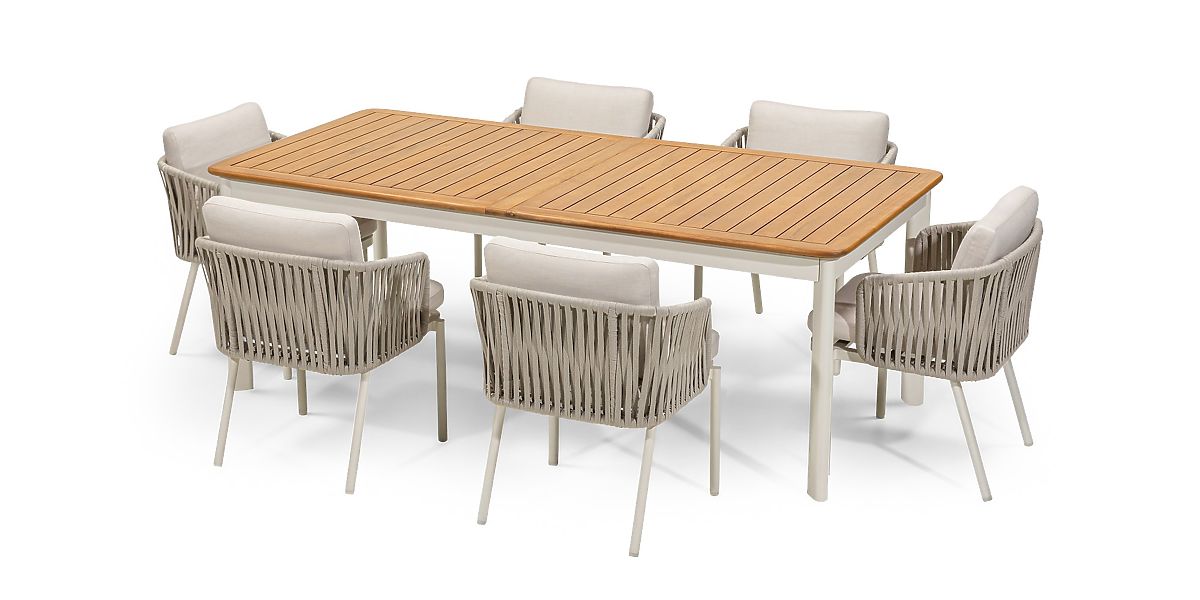 Lukahome.fr » mobilier de jardin / ensembles de jardin / Ensemble de jardin Porticato, table extensible 211-300 cm + 6 chaises, bois d'acacia FSC, aspect tec