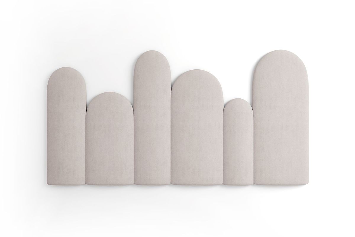 Ensemble de panneaux rembourrés est une solution originale pour revitaliser une chambre d'enfant ou une chambre à coucher. Il comprend 6 modules avec un bord supérieur arrondi rappelant une barrière, qui peuvent être combinés librement pour créer votre propre arrangement mural. Les panneaux sont fabriqués avec un accent sur la qualité, la sécurité et le confort. La finition grise est universelle et se combine facilement avec d'autres meubles et accessoires.