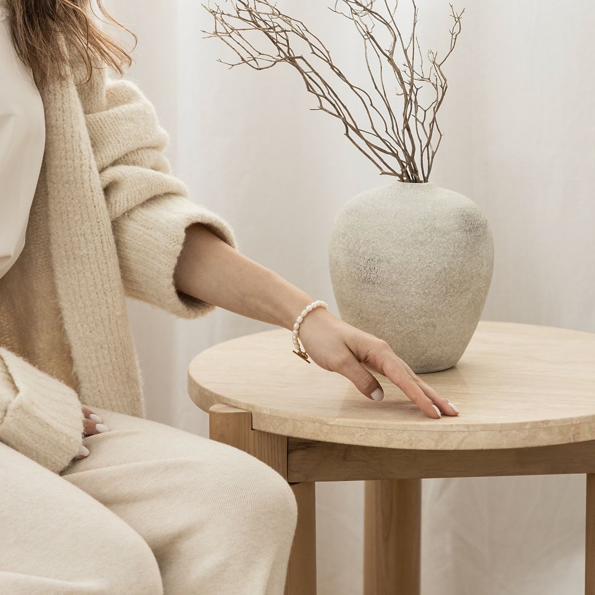 Lukahome.fr » Tables et tables basses / Tables basses / Table d'appoint Medley 50 cm, ronde, travertin/frêne