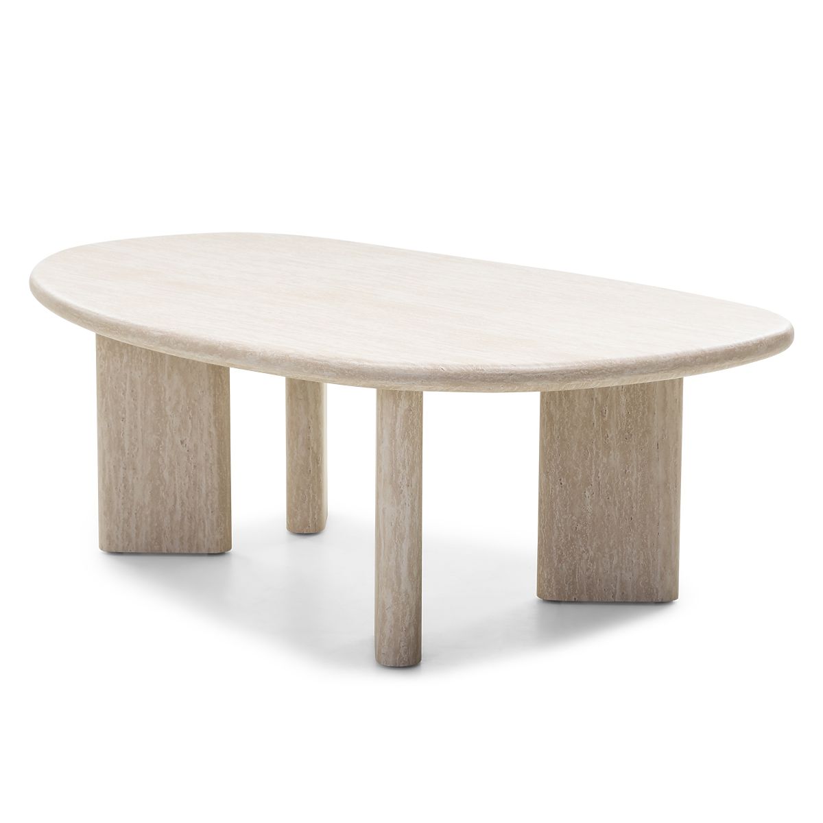 Table basse Cameron avec plateau de 130 cm en MDF et placage travertin. .. plus