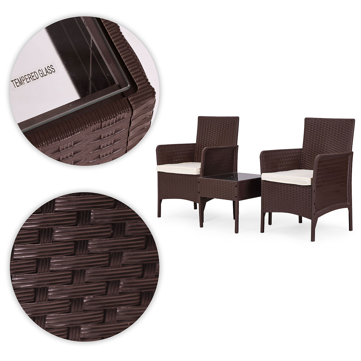 Lukahome.fr » mobilier de jardin / ensembles de jardin / Ensemble de mobilier de jardin 2 fauteuils + table en verre trempé marron MultiGarden