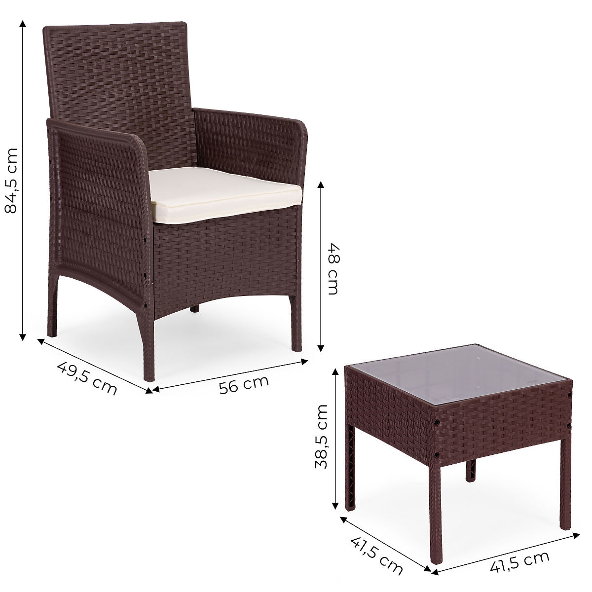 Créez un espace élégant pour rencontrer vos amis grâce à l'ensemble de mobilier de jardin MultiGarden. Cet ensemble élégant, composé de deux fauteuils confortables et d'une table avec un plateau en verre trempé, est un choix idéal pour une terrasse ou un jardin moderne. Le design inspiré du technorattan confère à l'aménagement un caractère intemporel et s'harmonise parfaitement avec l'environnement – que ce soit lors de conversations en soirée autour d'un verre de vin ou pendant des après-midis ensoleillés et paresseux. L'ensemble non seulement a fière allure, mais garantit également un confort d'utilisation en toute situation.