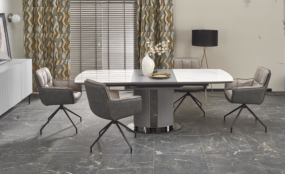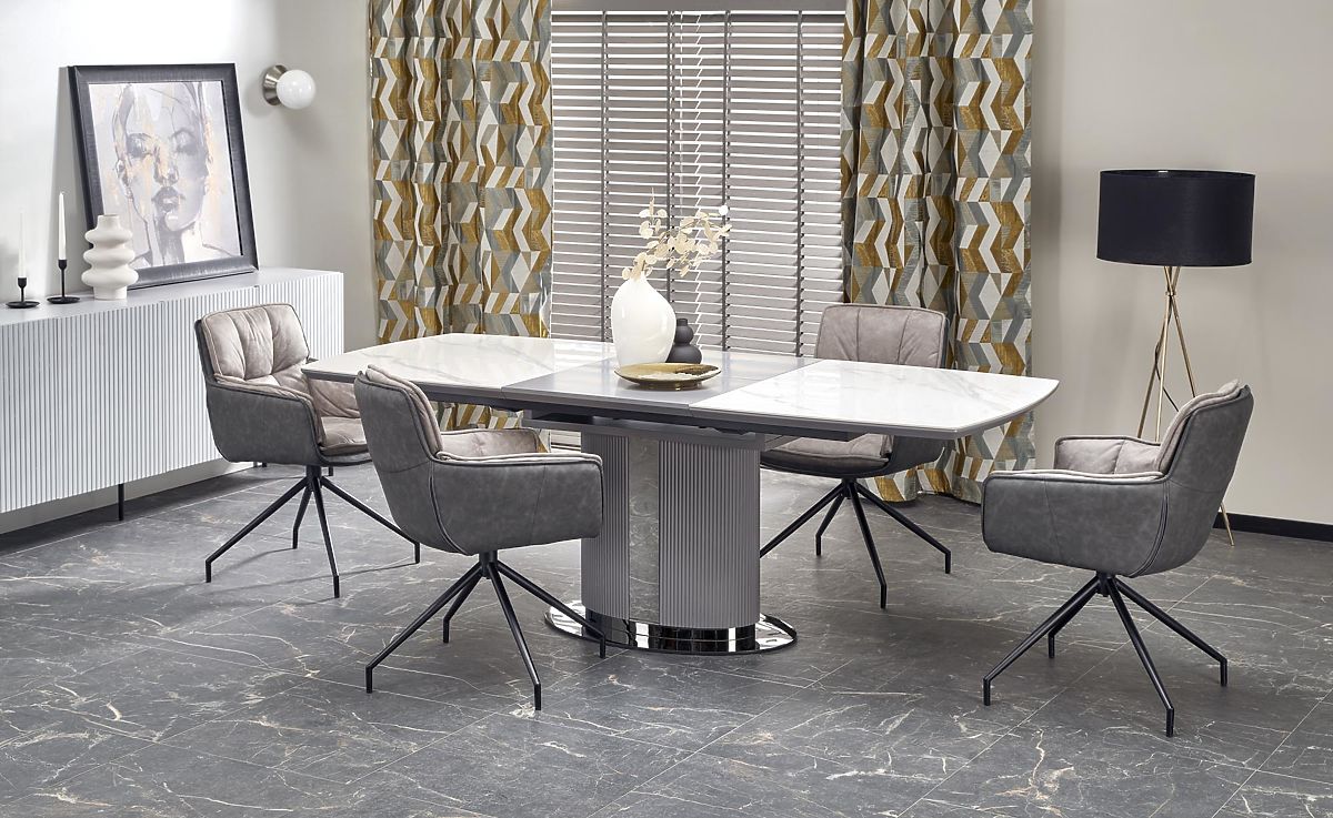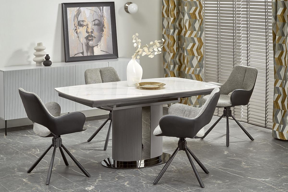 Lukahome.fr » salle à manger et cuisine / Tables à manger / Table extensible DANCAN, marbre blanc / gris / gris clair / noir (3p=1ks)