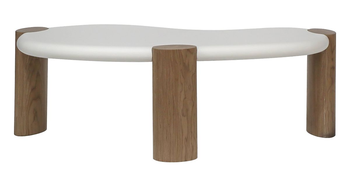 Table basse moderne en MDF avec plateau blanc et pieds en noyer. .. plus