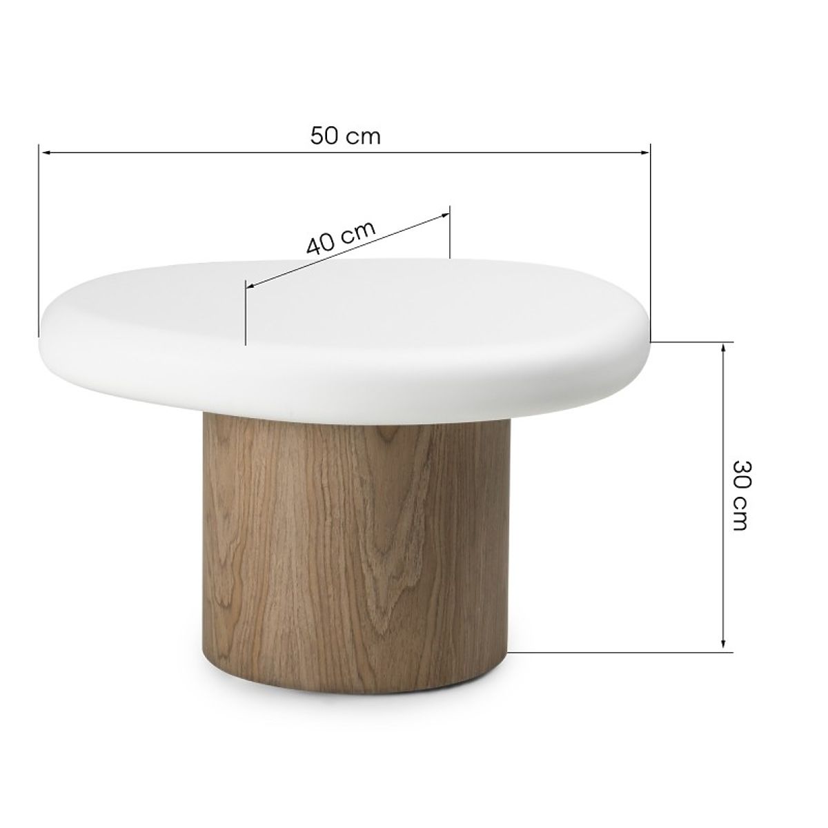 Table d'appoint moderne en MDF avec plateau blanc et base noyer. .. plus