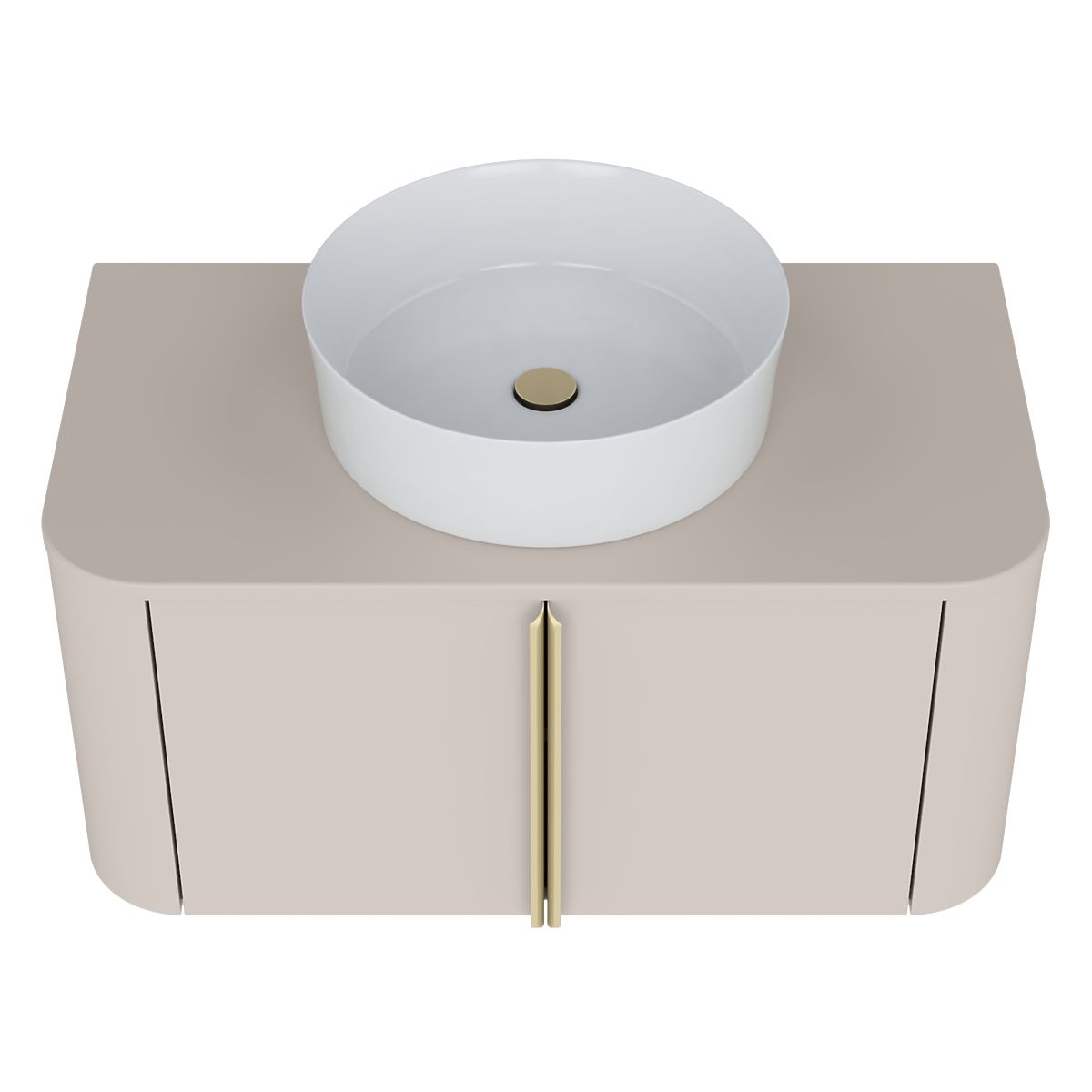 Lukahome.fr » Salle de bains et toilettes / meubles de salle de bain / Meuble sous vasque Bassa 80 cm, cachemire, poignées dorées, arrondi