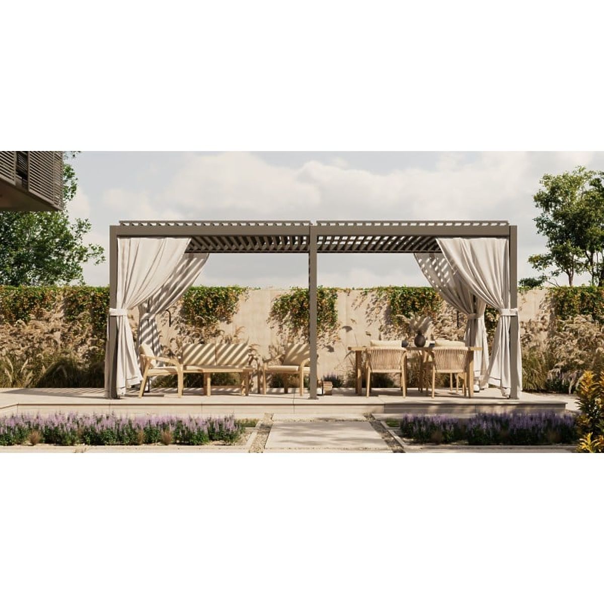 Découvrez les possibilités infinies de détente et de moments passés en plein air grâce à la pergola de jardin Antilla ! Cette structure autoportante en aluminium robuste ajoute non seulement de l'élégance et de la fonctionnalité à votre jardin, mais crée également un espace pour se détendre et vivre des moments inoubliables avec vos proches. Ses dimensions imposantes - 6x3 m - offrent une fonctionnalité et une flexibilité d'utilisation bien supérieures par rapport aux modèles plus petits. Sa grande superficie permet de diviser l'espace en différentes zones, par exemple, une zone de repas et une zone de détente, et de créer un espace de relaxation confortable, enrichi par des solutions innovantes telles que des systèmes audio ou des écrans de projection pour regarder des films. Grâce à ses grandes dimensions, la pergola devient le cœur du jardin ou de la terrasse, accueillant confortablement des ensembles de détente et des ensembles de jardin. Une telle solution offre plus de confort lors des réunions sociales et une meilleure séparation de l'environnement, augmentant ainsi le sentiment d'intimité. De plus, la pergola de 3x6 m peut facilement abriter deux voitures de taille moyenne, offrant une couverture qui protège de la pluie, de la neige et des rayons UV nocifs. La solidité et l'élégance vont de pair - la structure en aluminium de la pergola Antilla séduit non seulement par son design moderne, mais aussi par sa durabilité exceptionnelle. Elle est résistante à la corrosion et supporte des vents allant jusqu'à 120 km/h et une charge de neige jusqu'à 60 kg/m². Son toit est composé de lames mobiles dont l'angle d'inclinaison peut être ajusté aux conditions météorologiques grâce à deux manivelles pratiques. Les panneaux régulent non seulement l'accès à la lumière, mais garantissent également une étanchéité à 100 % une fois fermés, protégeant efficacement contre la pluie et l'excès de soleil. Nos lames de pergolas sont 100 % en aluminium - légères, résistantes à la corrosion et extrêmement durables. Contrairement aux solutions en acier, elles ne rouillent pas et n'alourdissent pas la structure. De plus, elles assurent une circulation d'air idéale, créant une atmosphère confortable lors de l'utilisation. La conception réfléchie de la pergola permet un drainage efficace de l'eau de pluie et tous les éléments du système ont été discrètement cachés à l'intérieur de chacun des quatre pieds, préservant ainsi l'esthétique de l'ensemble. La pergola bioclimatique Antilla possède les certifications nécessaires confirmant le respect des normes les plus élevées, ce qui la rend parfaitement adaptée aux terrasses et jardins privés ainsi qu'aux espaces commerciaux tels que les terrasses de restaurants et d'hôtels. La pergola est conçue pour un montage autonome - le kit comprend tout le nécessaire pour créer votre propre oasis de détente, et des instructions claires étape par étape rendent le processus de montage simple et satisfaisant. Pour rendre votre détente encore plus agréable, vous pouvez équiper votre pergola d'accessoires payants supplémentaires. Un rideau en tissu facile à nettoyer de couleur blanche offre non seulement une protection supplémentaire contre le soleil, mais aussi une transparence créant une atmosphère de légèreté et de liberté. Et si vous souhaitez une protection complète, optez pour un store de type screen. Fabriqué en tissu résistant aux intempéries, il protège des rayons UV, du vent léger, de la pluie et des insectes, tout en offrant une ombre agréable. Vous pouvez décider comment et sur combien de murs de la pergola vous souhaitez installer des rideaux ou des stores. Pour cela, il est nécessaire de sélectionner dans le configurateur leur quantité et leur taille adaptée à la largeur du mur. Le côté le plus long de la pergola est soutenu par un pied supplémentaire, donc pour un mur de 586 cm, ce sera un ensemble de deux stores et rideaux de 278 cm de large chacun. Mais ce n'est pas tout ! Pour plonger dans l'atmosphère magique de la soirée, choisissez un éclairage LED d'ambiance. Vous pouvez choisir entre un éclairage traditionnel avec télécommande et boîtier de contrôle ou un éclairage solaire économe en énergie, qui fonctionne grâce à un panneau solaire et une batterie intégrée.