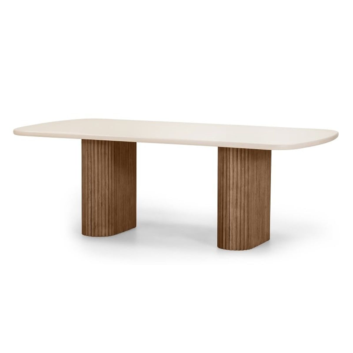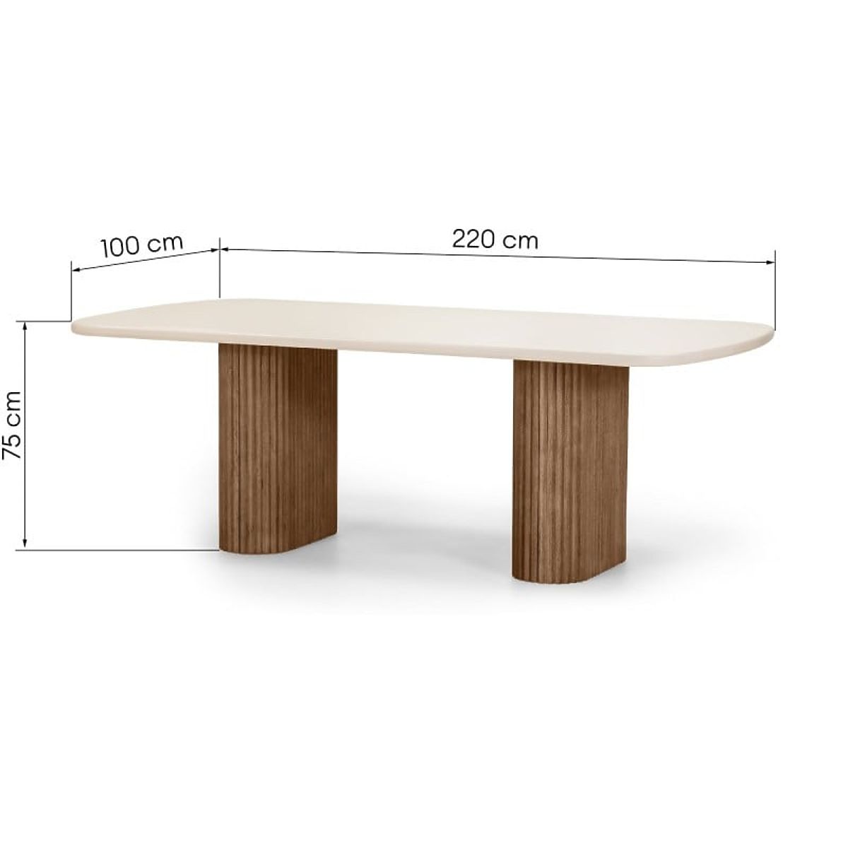 Lukahome.fr » mobilier de jardin / tables de jardin / Table de jardin Rovigo 220 cm avec plateau en pierre, bois d'acacia foncé/beige clair, formes arrond