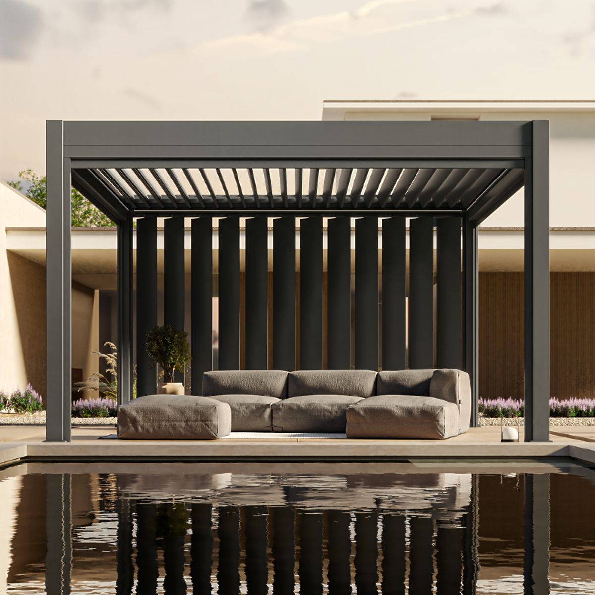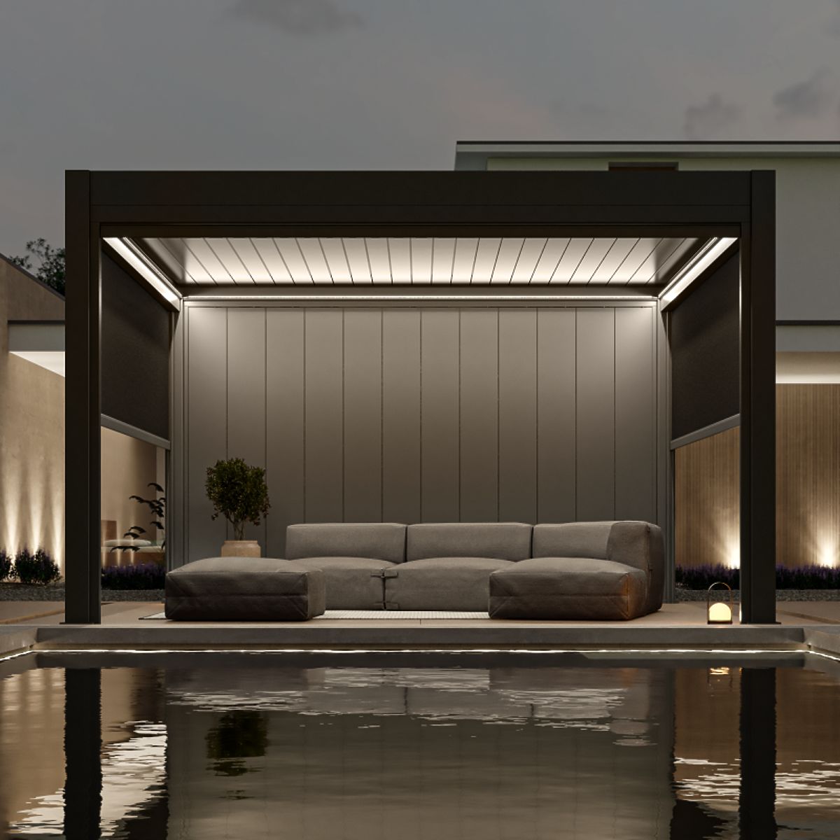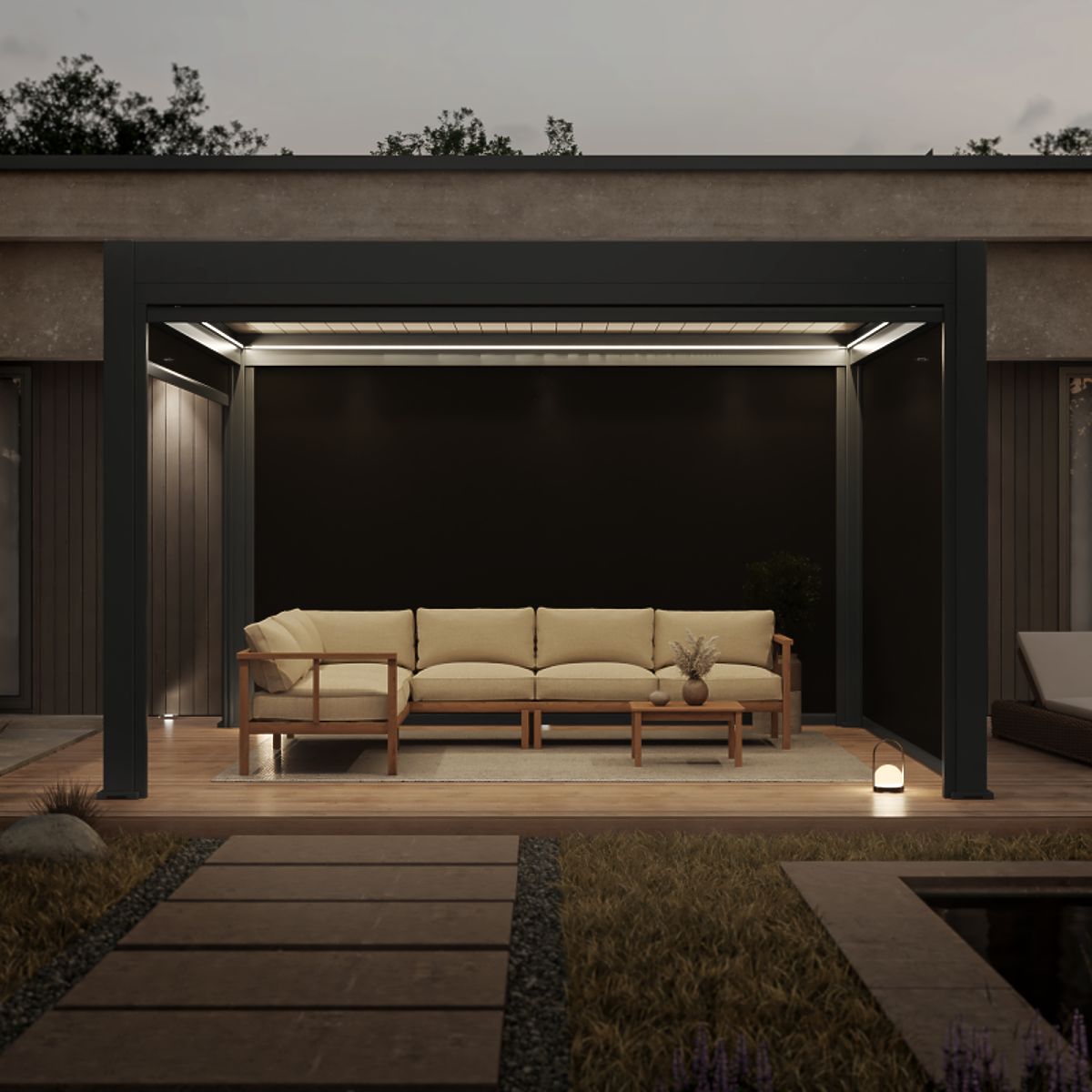 Pergola bioclimatique Lumera avec lames mobiles et éclairage LED intégré. .. plus