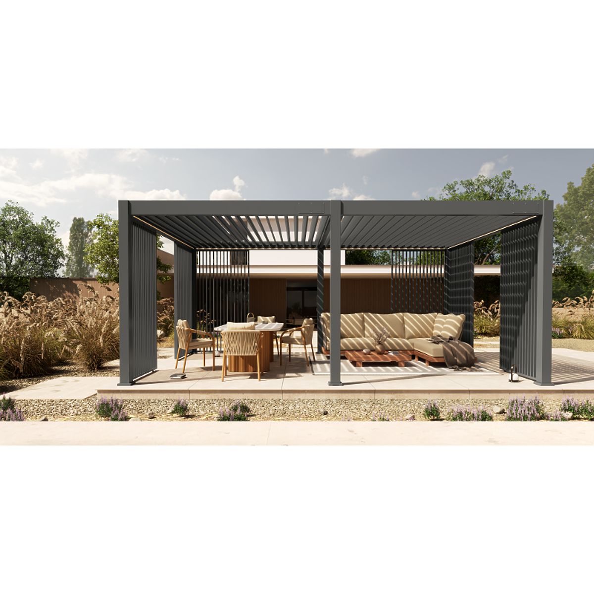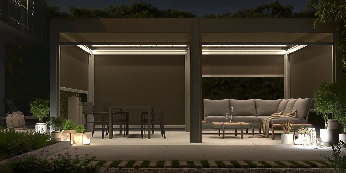 Pergola bioclimatique Lumera en aluminium avec éclairage LED intégré. .. plus
