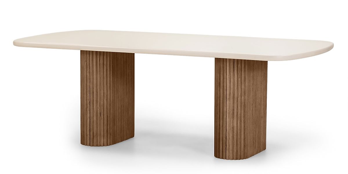 - Table avec plateau beige clair aux bords arrondis
