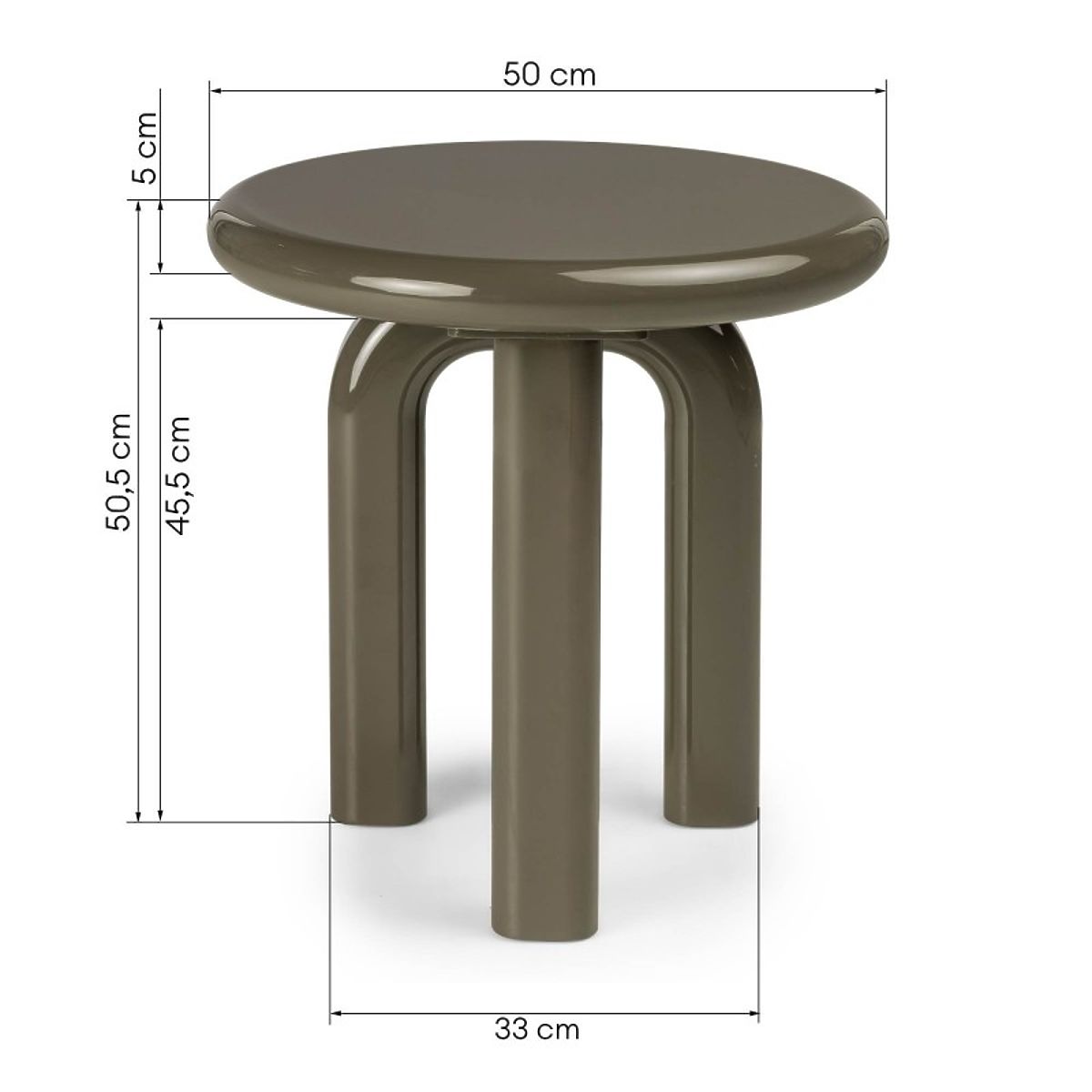 Table d'appoint Flambe en MDF, vert-gris, brillant, Ø50 cm. .. plus
