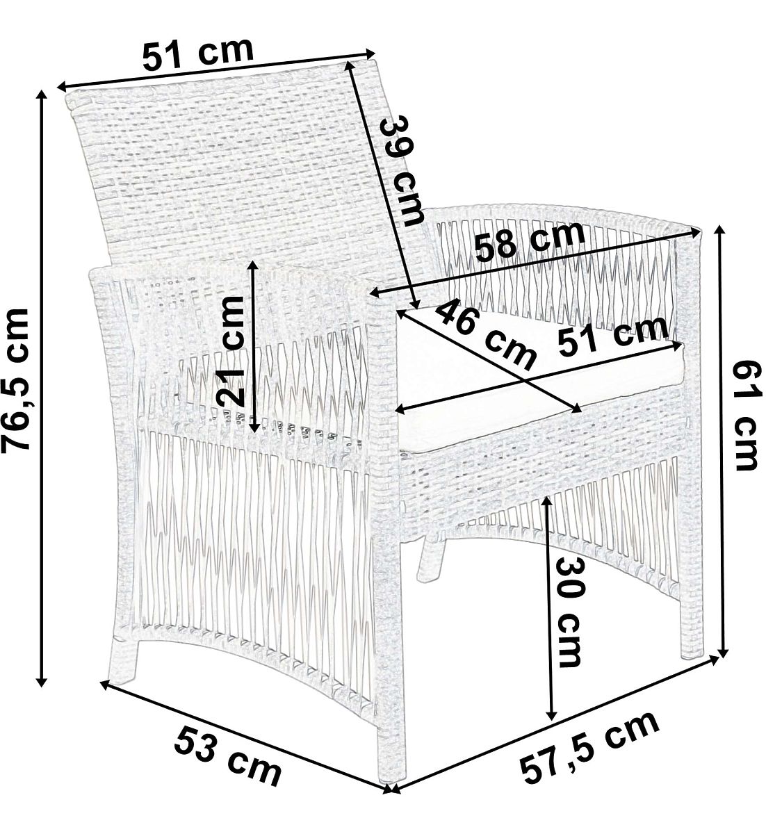 Hauteur de l'assise aux accoudoirs : 21 cm