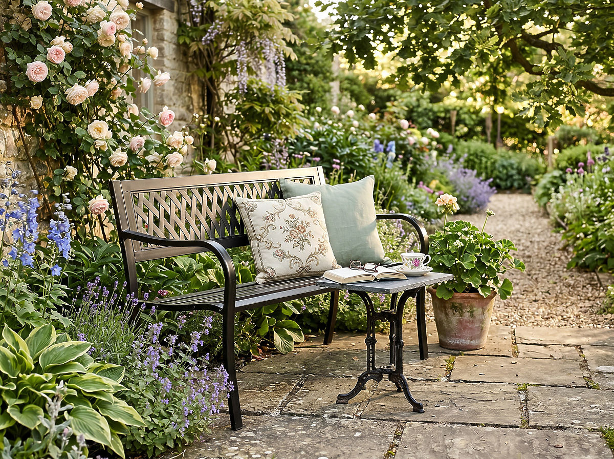 ✅Polyvalence du design : Le motif classique assure que le banc s'adapte parfaitement à divers aménagements d'espaces extérieurs.