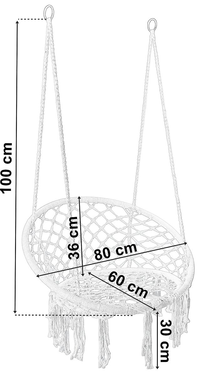 La balançoire peut être montée de deux manières - sur un ou deux points, car elle est terminée par deux anneaux métalliques.