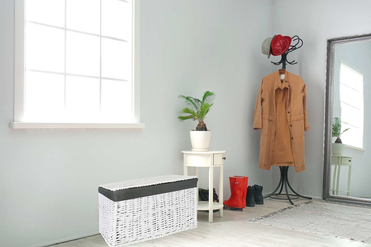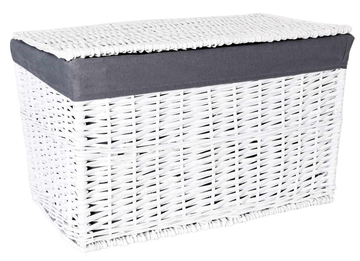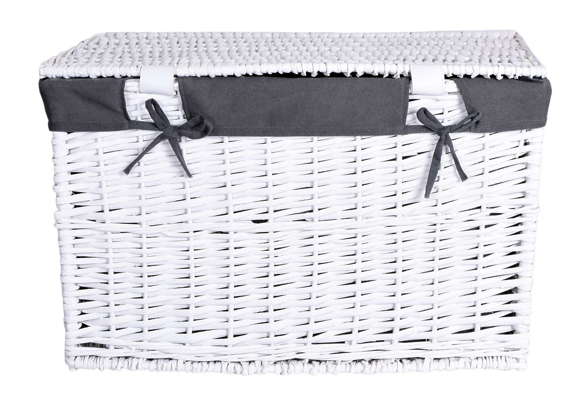 Coffre en osier 76x46x46 cm - 160L - blanc-gris
