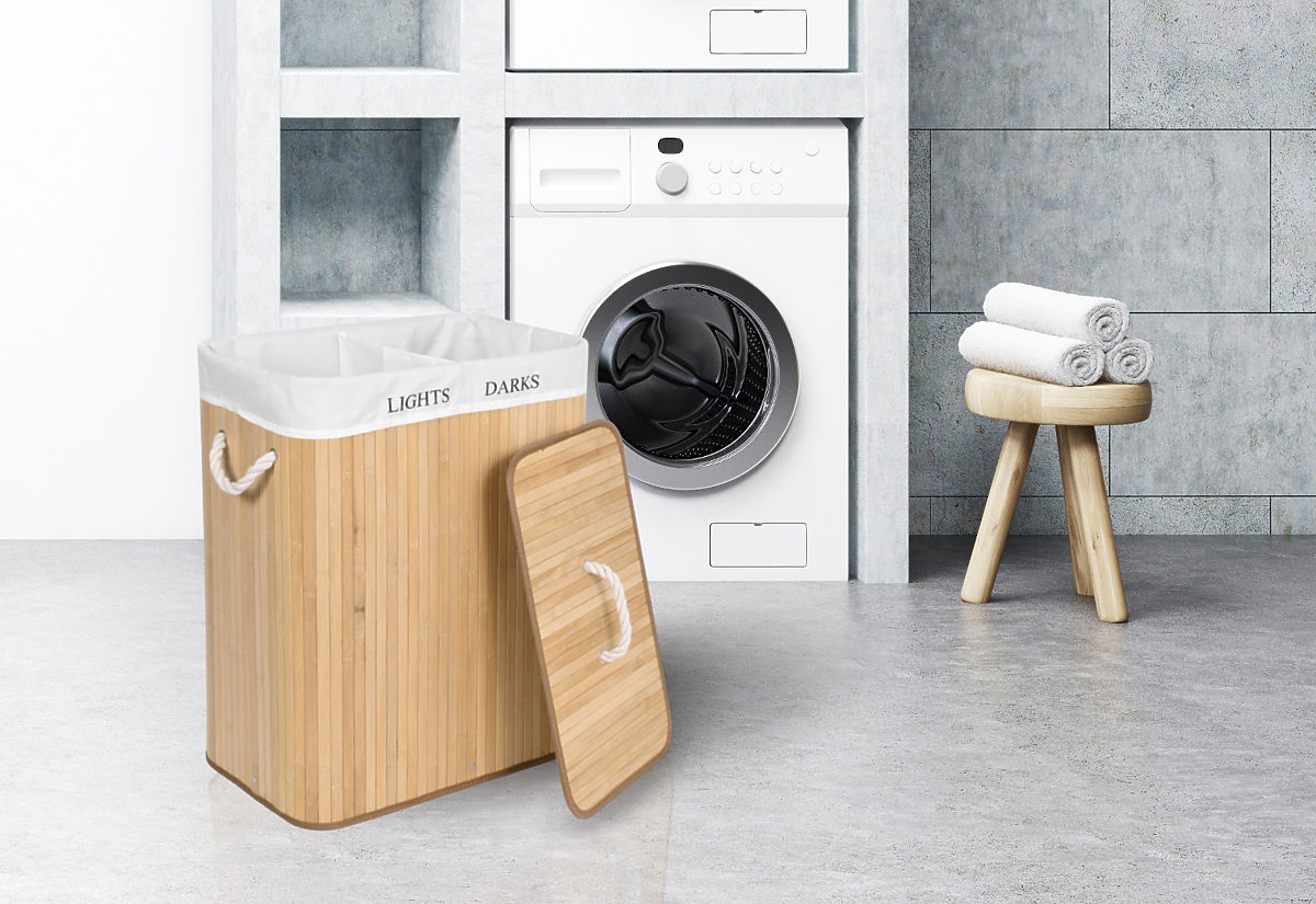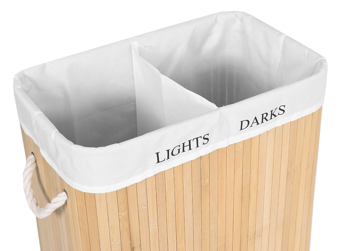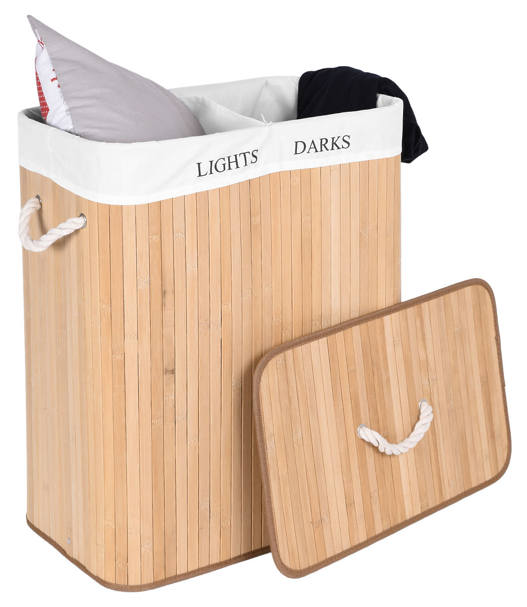 Panier à linge en bambou avec 2 compartiments naturel