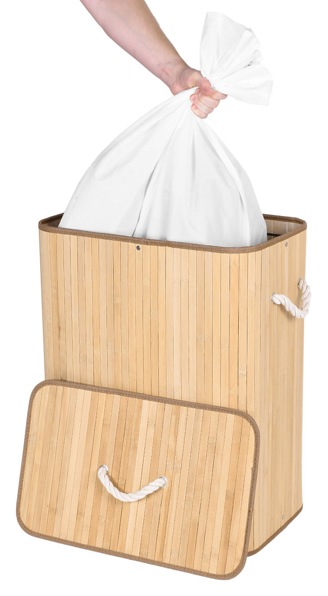 Le plus beau et le plus durable des paniers à linge stylés avec une capacité de 100 litres. Fabriqué en bambou naturel. L'intérieur est équipé d'un sac en lin avec une cloison pratique pour le linge clair et foncé. Structure simple, structure solide. Cache les mauvaises odeurs. Permet un lavage confortable et rapide.