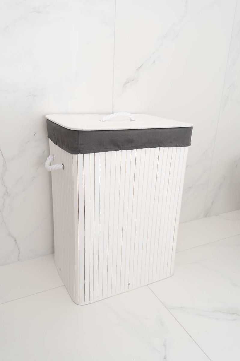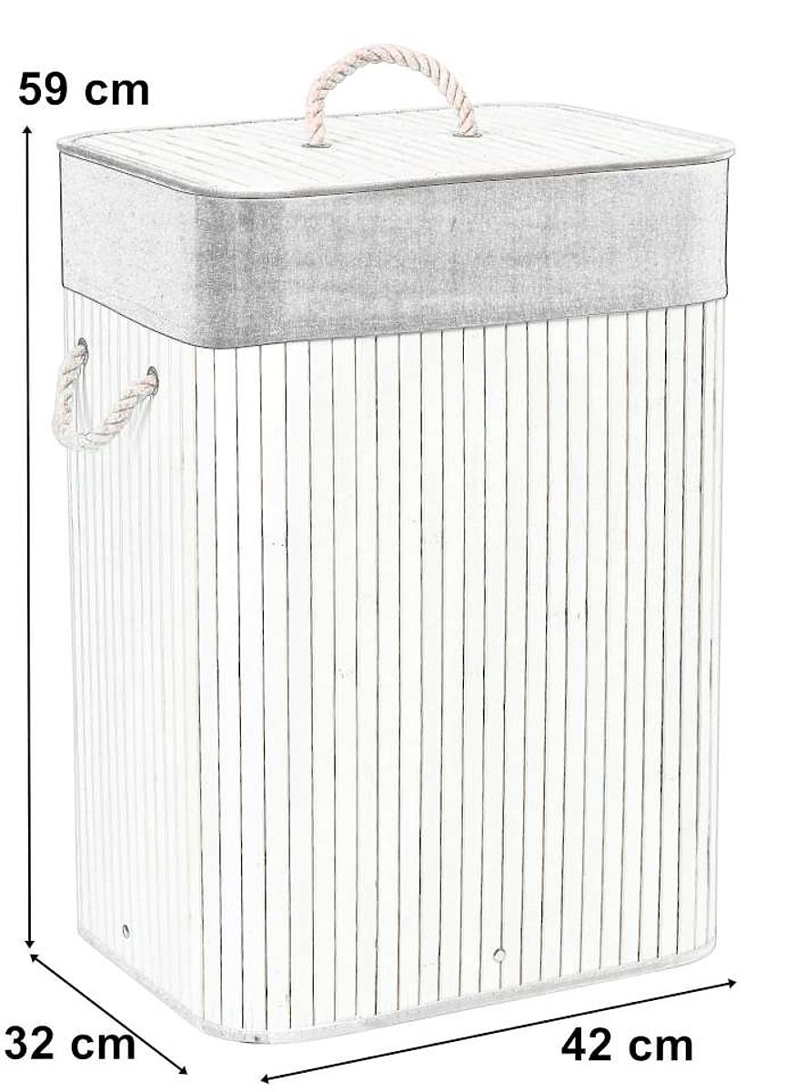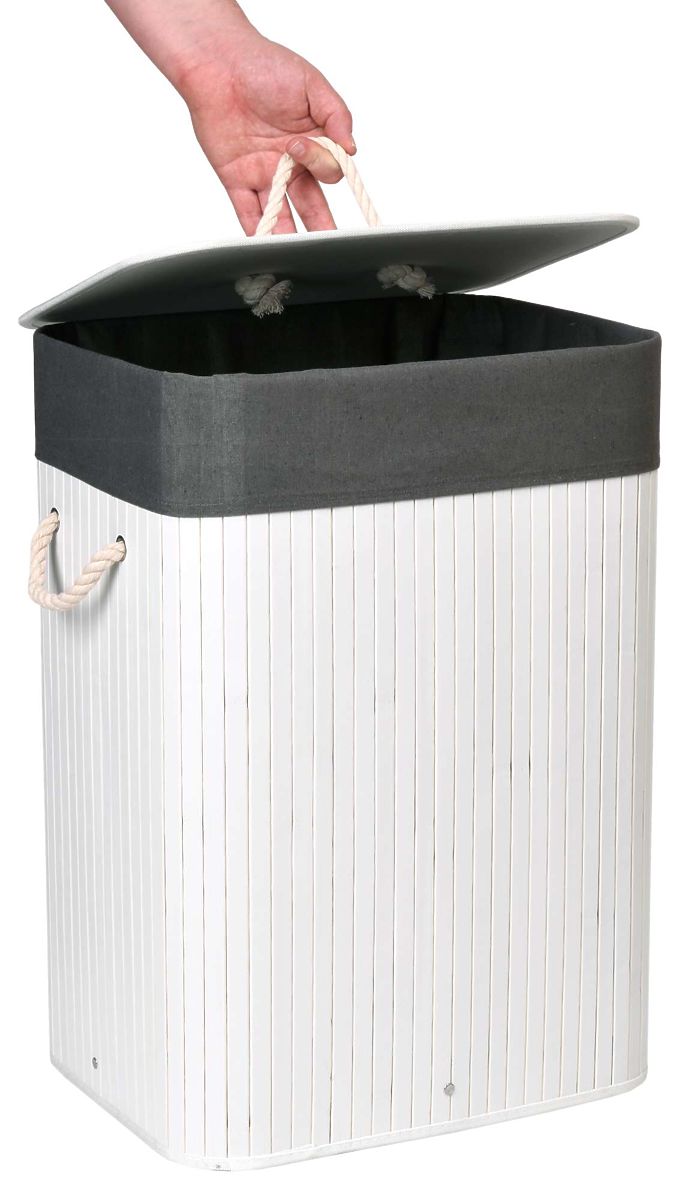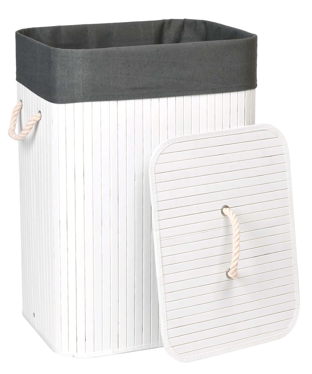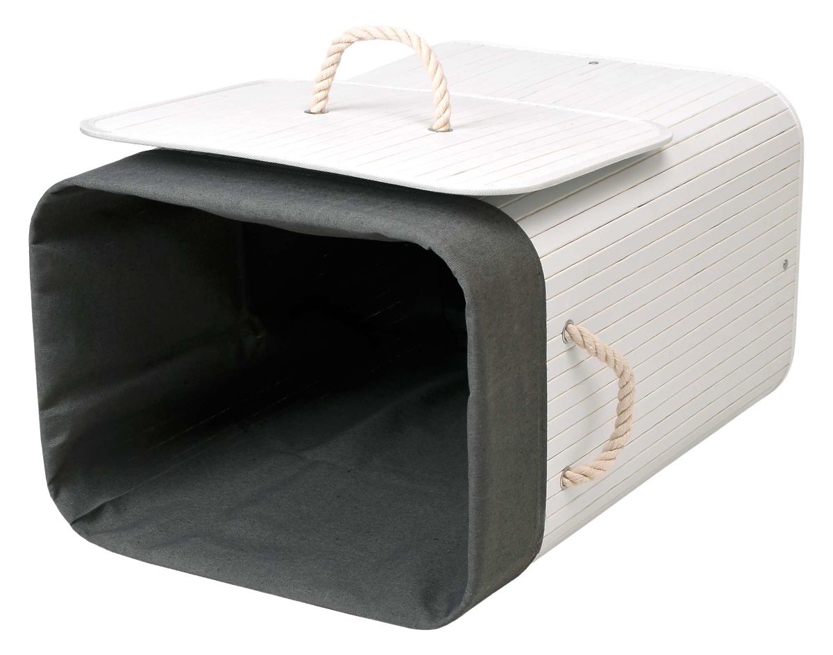 Panier à linge en bambou avec couvercle 80L blanc-gris