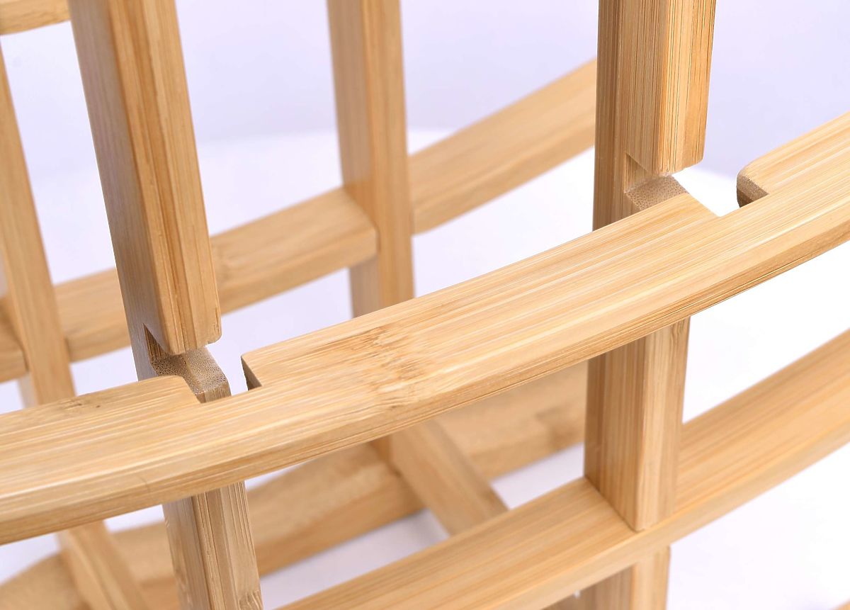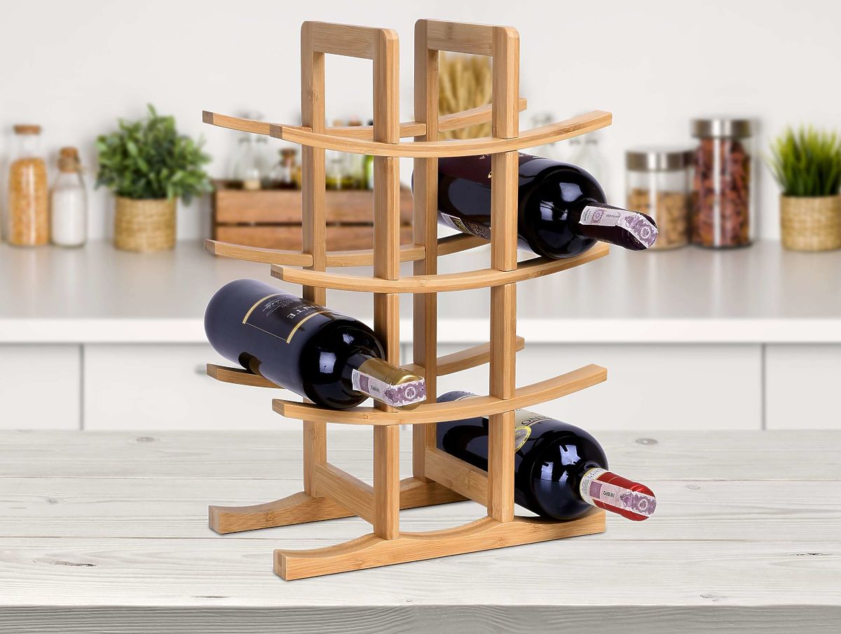 Ce porte-bouteilles de haute qualité en bois de bambou peut contenir jusqu'à 12 bouteilles de vin. Ergonomique - il prend peu de place mais offre une grande capacité. Le support se distingue par sa naturalité et son design légèrement asiatique. Grâce à ses deux parties latérales et ses entretoises transversales courbées, il rappelle les portails japonais et attire l'attention. Résistant à l'humidité, ce porte-bouteilles convient également à la cuisine. 4 patins en caoutchouc souple assurent une position stable tout en protégeant la surface des rayures inesthétiques. Le support garantit un stockage idéal des bouteilles de vin - les bouchons ne sèchent pas.