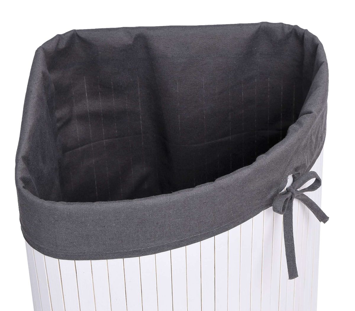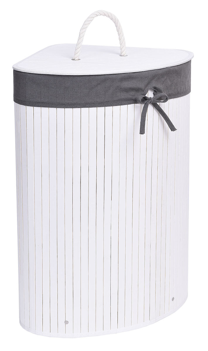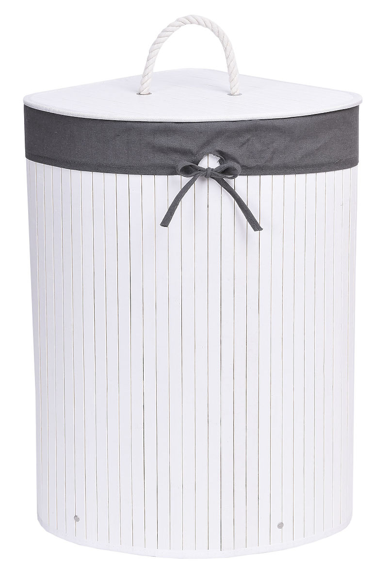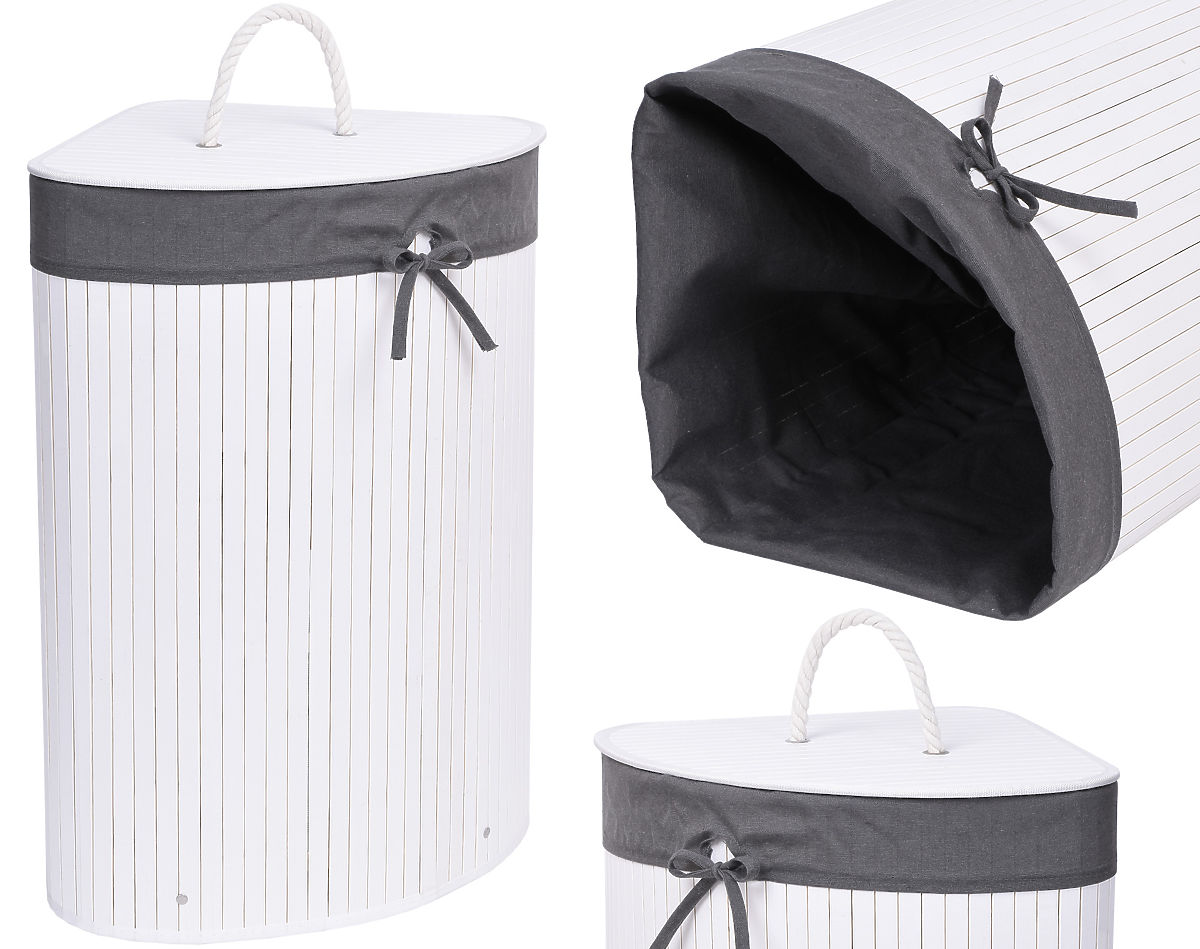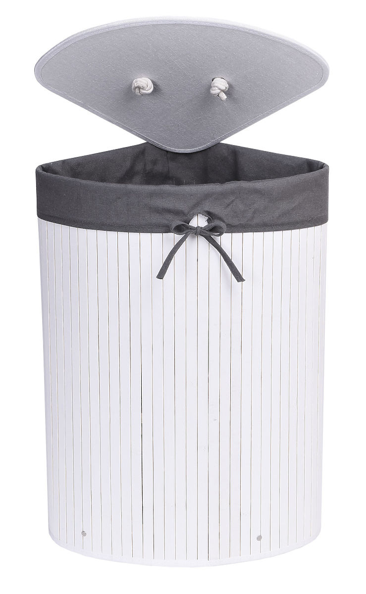 Panier à linge d'angle en bambou avec couvercle blanc-gris