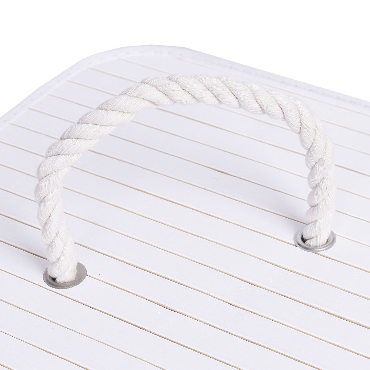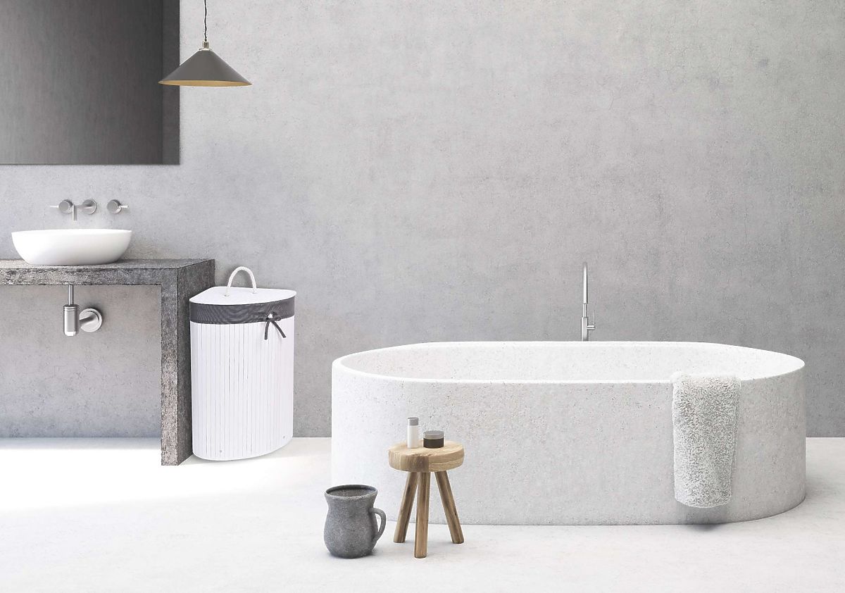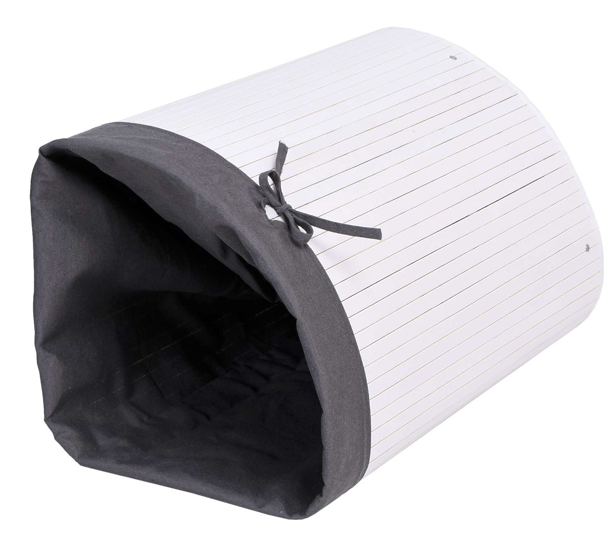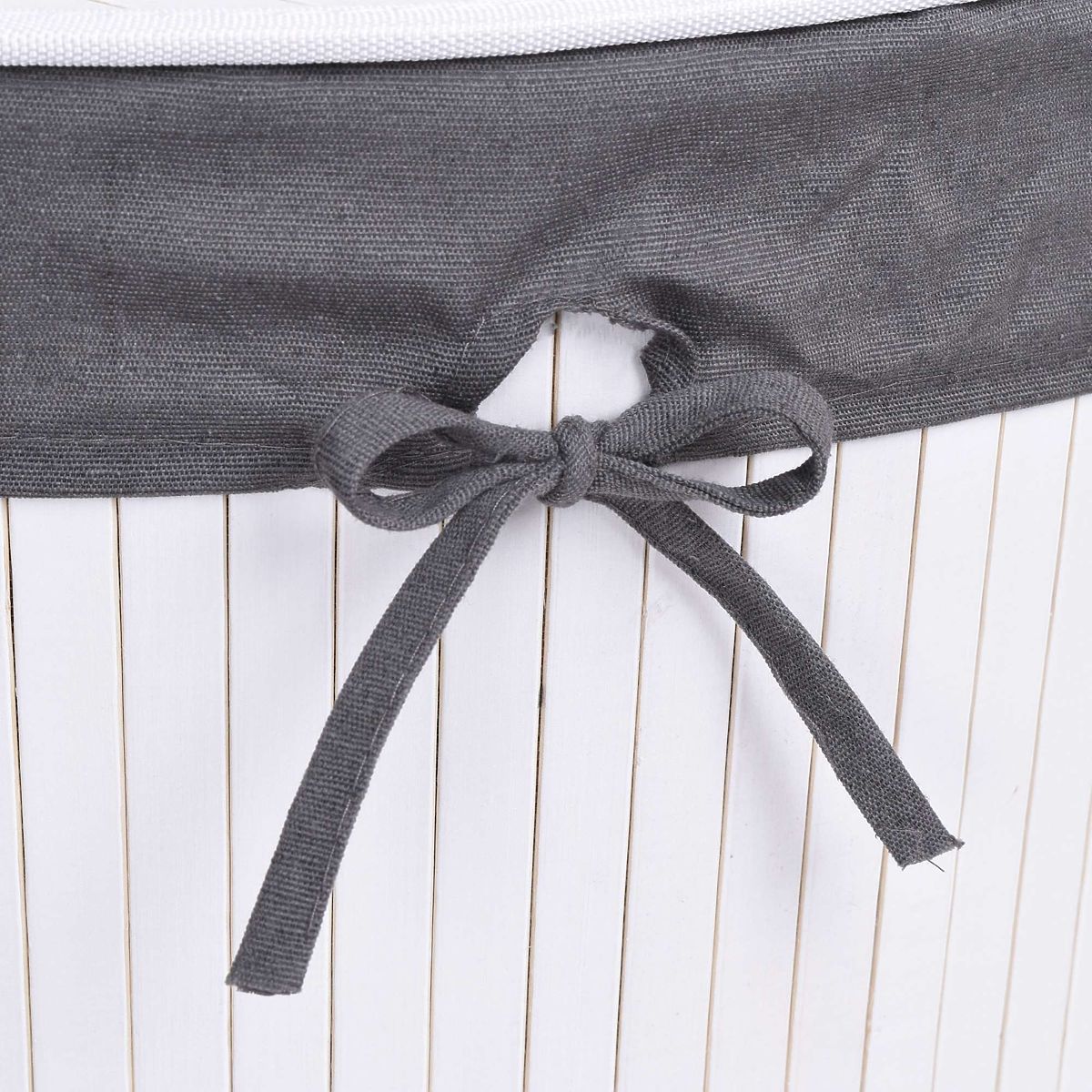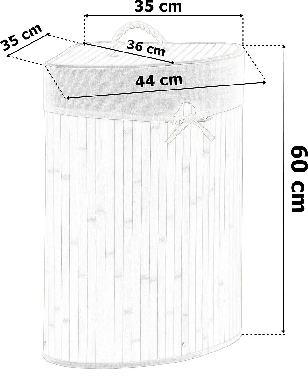 Panier à linge d'angle en bambou avec couvercle blanc-gris