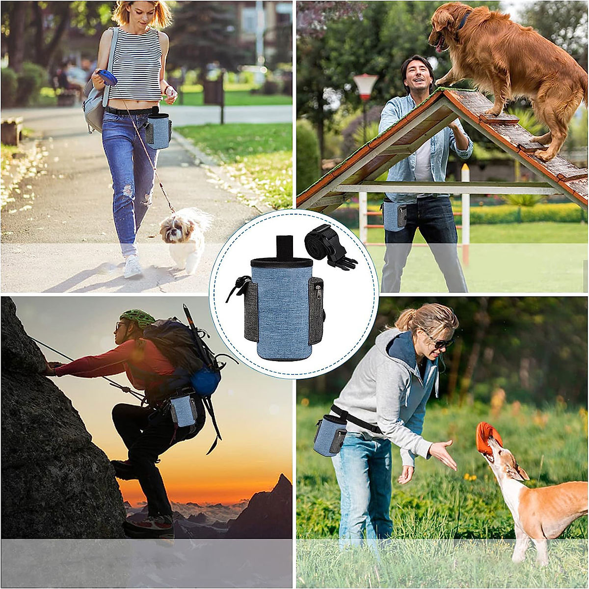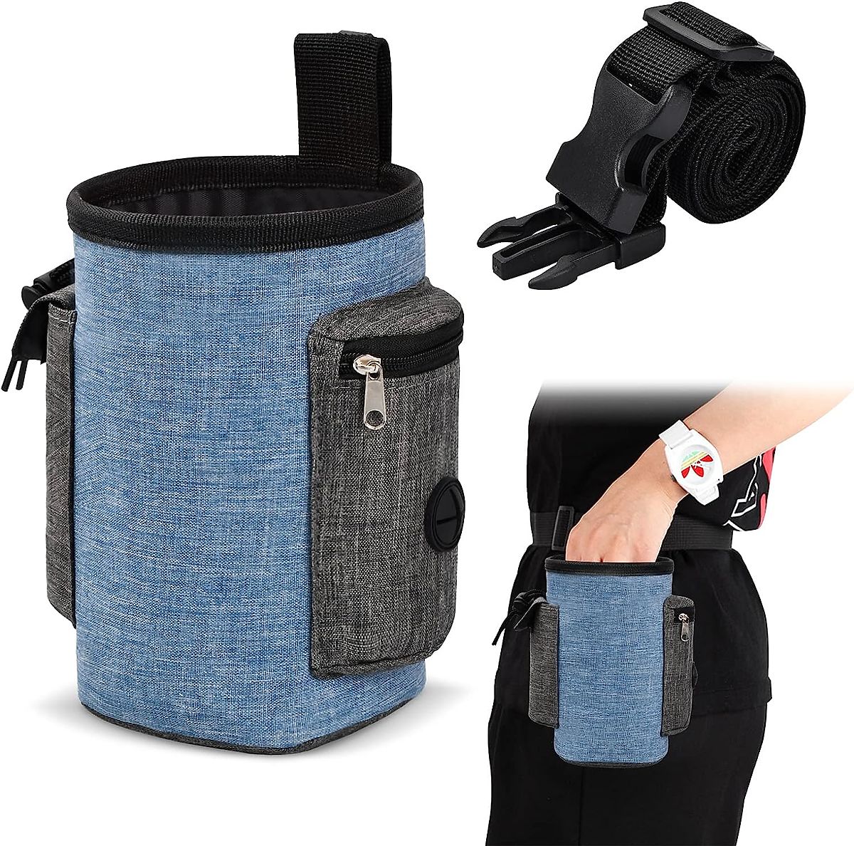 Sac à friandises exceptionnel pour chien - de haute qualité, résistant à l'eau et durable. Idéal pour voyager avec votre animal de compagnie, garantissant des promenades et des voyages en toute sécurité. Grande capacité, compartiments supplémentaires et poches pour petits objets. Clip ceinture solide, ceinture ajustable. Accès facile au contenu, sans risque de renverser la nourriture. Lin imperméable - le sac est ainsi léger, durable, facile à nettoyer.