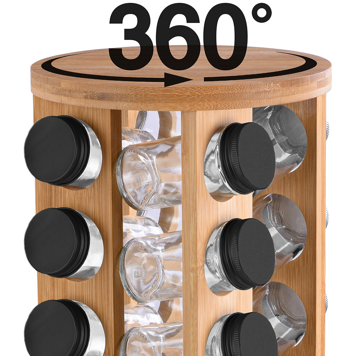 ⭐Bois de bambou⭐20 bocaux en verre⭐72 étiquettes⭐Rotation 360°
