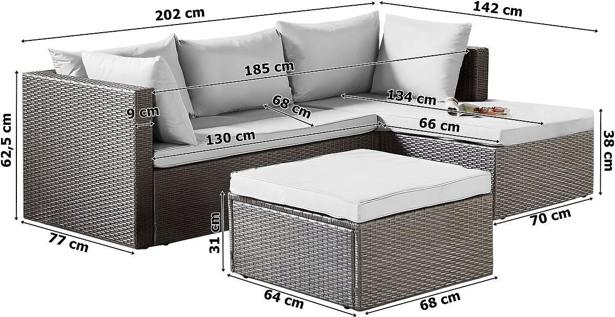 ✅ Résistance du matériau : L'ensemble est fabriqué en technorattan, résistant aux intempéries et facile à entretenir. Le technorattan imite parfaitement le rotin naturel tout en conservant ses propriétés pendant longtemps.