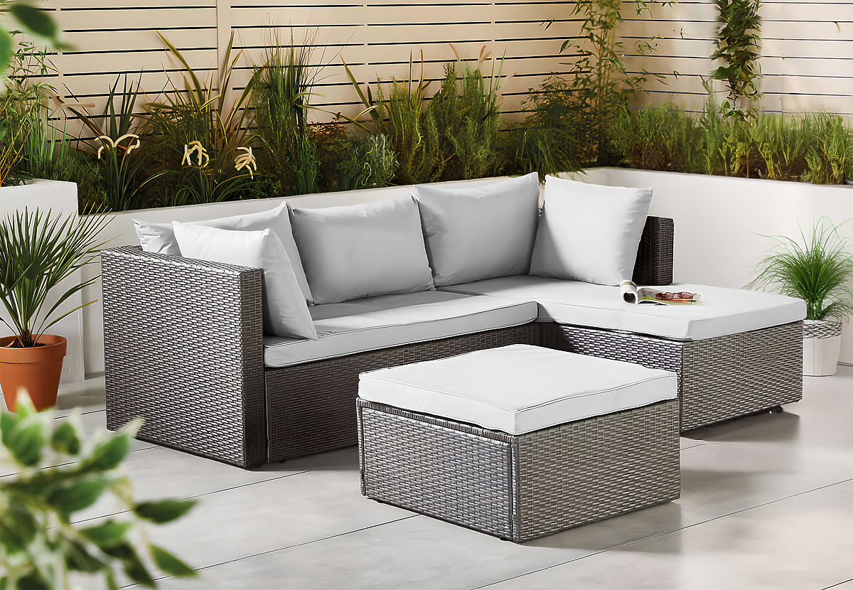 Ensemble de mobilier de jardin FLORENCJA canapé gris ottoman