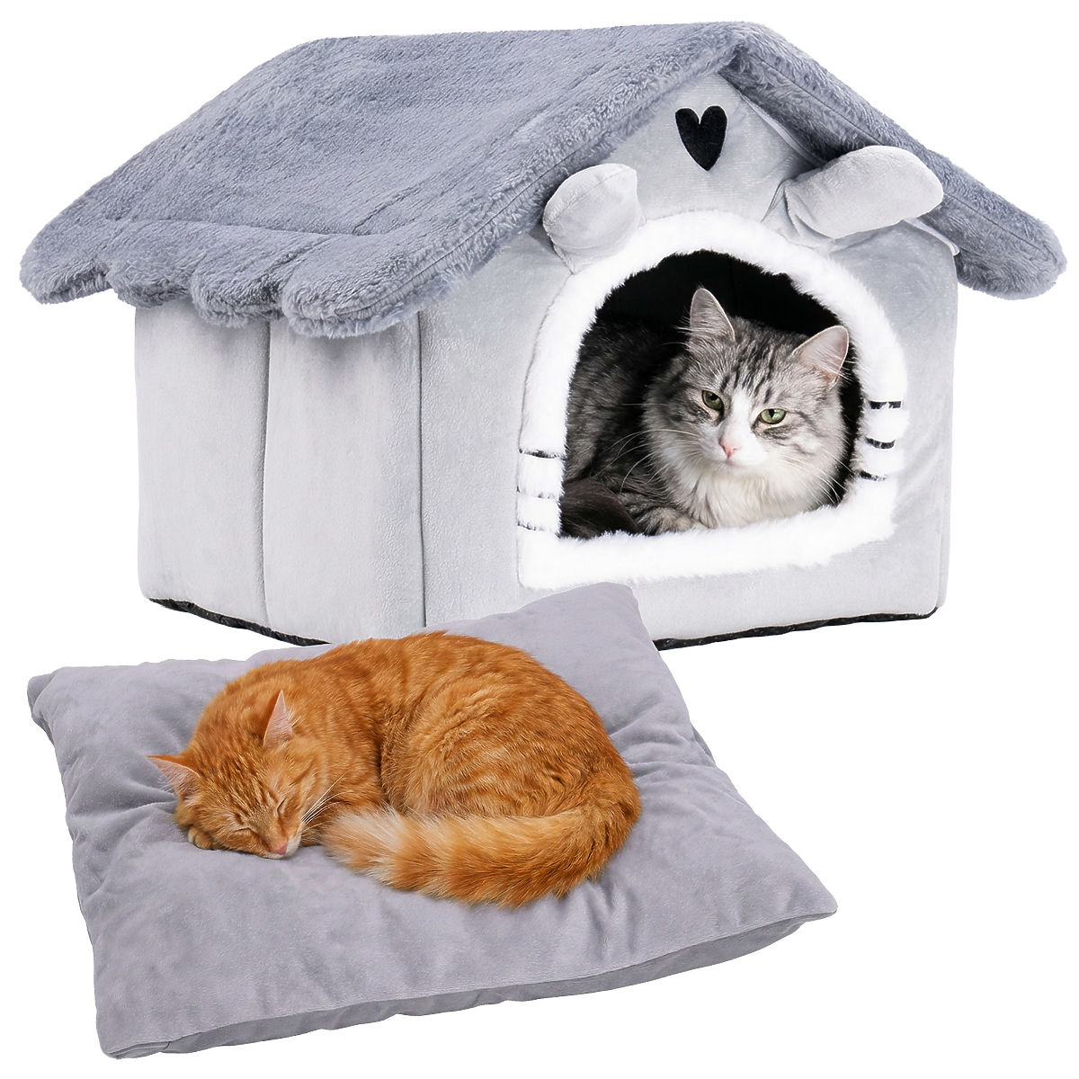✅ Peluche et confort : Le matériau agréable au toucher rend la maison extrêmement confortable pour le chat.