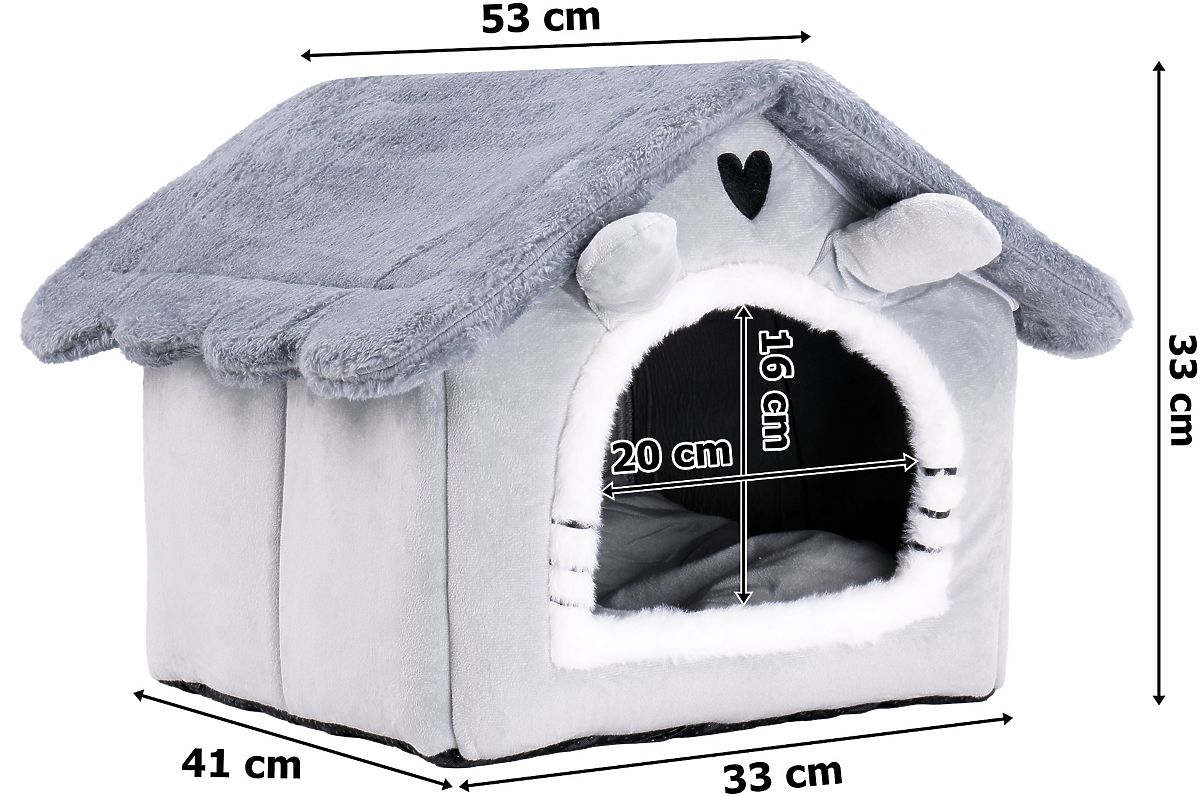 L'entrée de la maison est large et facilement accessible, permettant au chat d'entrer et de sortir librement. De plus, le bord de l'entrée en matériau peluche assure sécurité et confort à chaque mouvement de l'animal. À l'intérieur, se trouve un coussin agréablement doux. Il assure un confort maximal et une atmosphère douillette, devenant un lieu de repos idéal pour votre animal. Grâce à la possibilité de retirer le coussin, il est facile à entretenir, garantissant des conditions toujours fraîches et hygiéniques pour le chat.