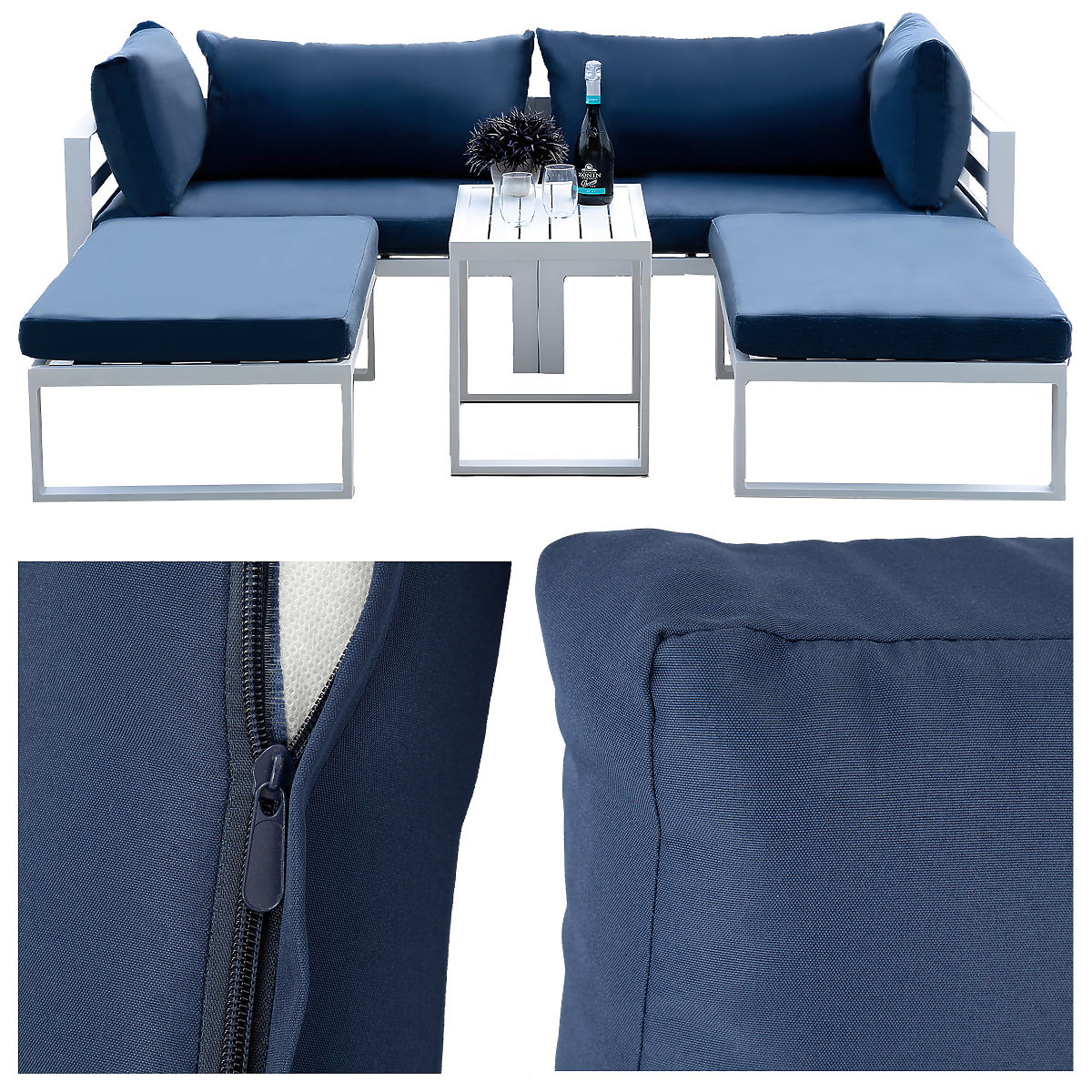L'ensemble de mobilier de jardin Santo en blanc est la solution parfaite pour ceux qui souhaitent profiter du confort et du style en plein air. Grâce à sa conception modulaire, vous pouvez adapter la disposition du mobilier à vos besoins et créer l'endroit idéal pour se détendre ou se retrouver en famille et entre amis. La haute qualité des matériaux, comme l'aluminium laqué par poudrage, assure durabilité et entretien facile. Les housses amovibles facilitent le nettoyage et la possibilité de régler les pieds et de fixer les modules garantit stabilité et confort d'utilisation. En choisissant l'ensemble Santo, vous obtenez non seulement une apparence élégante, mais aussi fonctionnalité et durabilité qui répondront à toutes vos attentes.