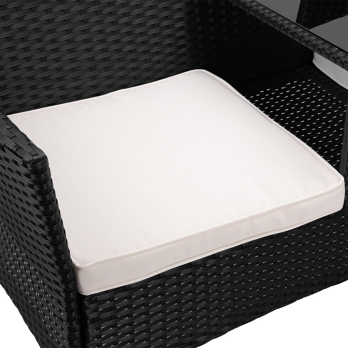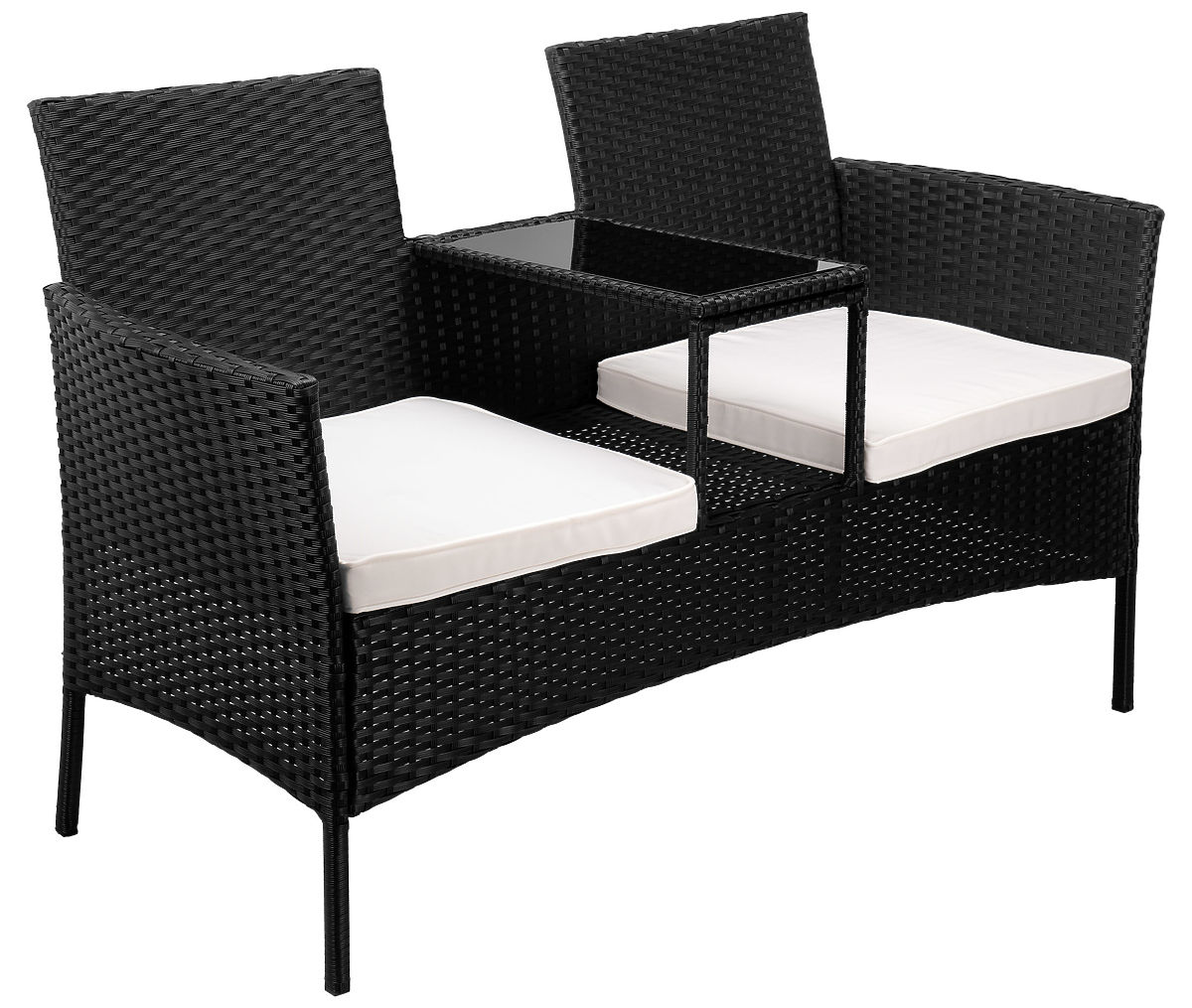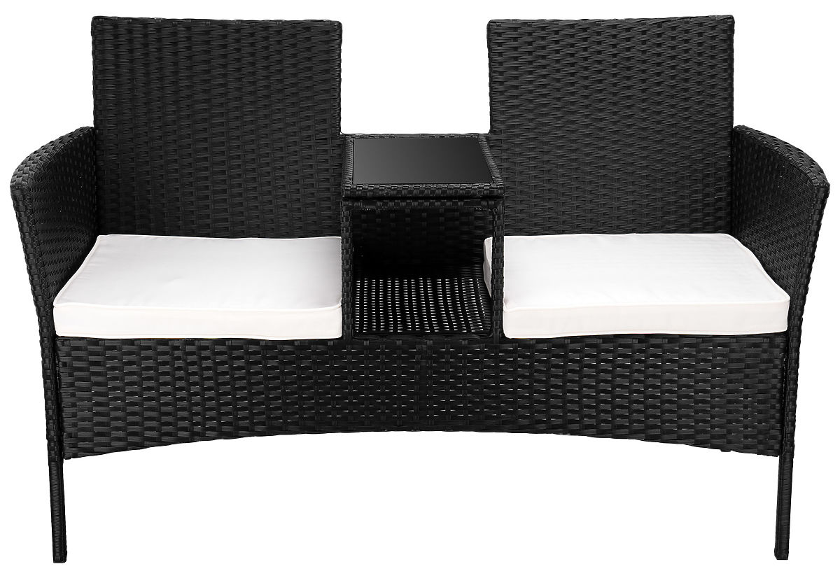 Banc de jardin en résine tressée canapé CORDOBA noir avec coussins beiges