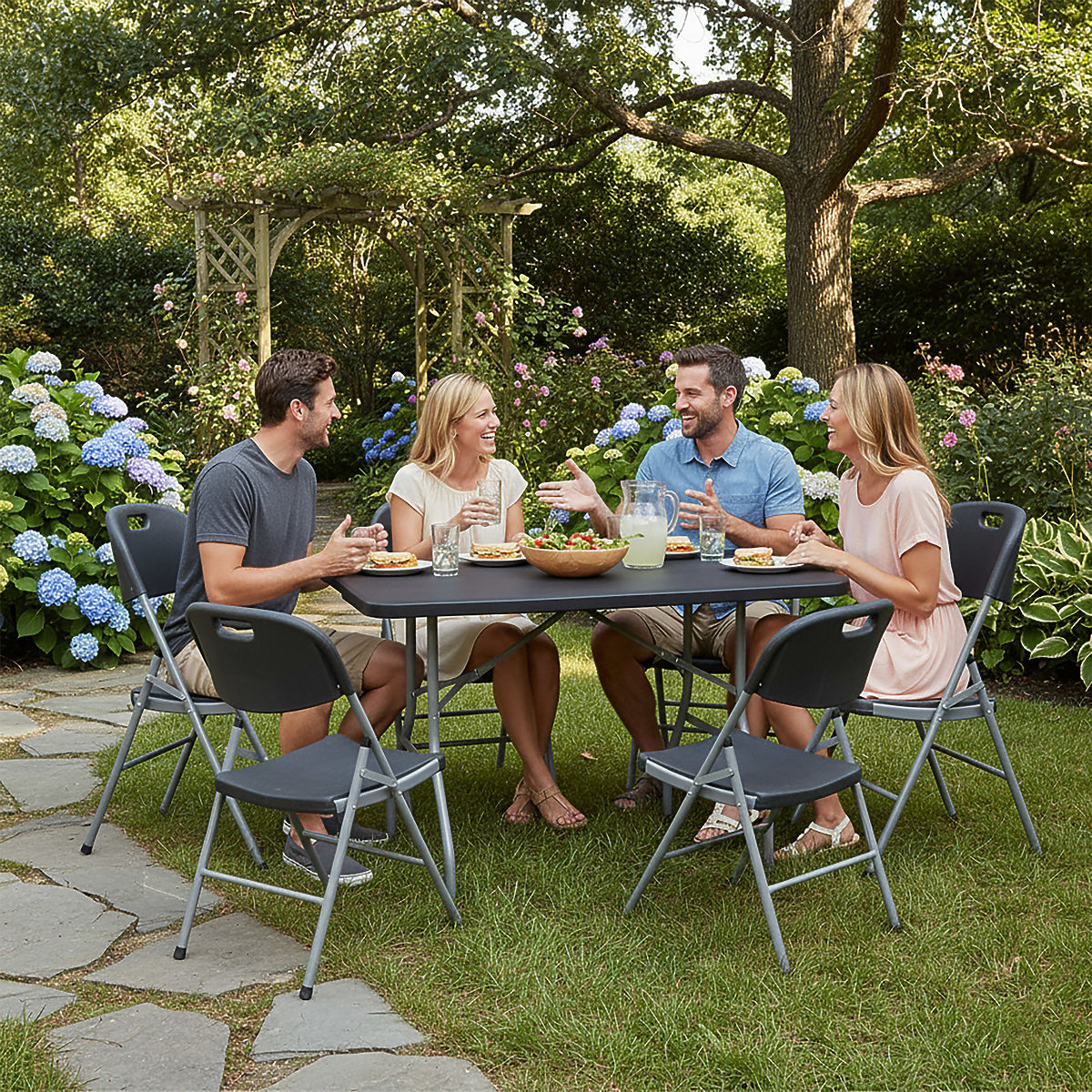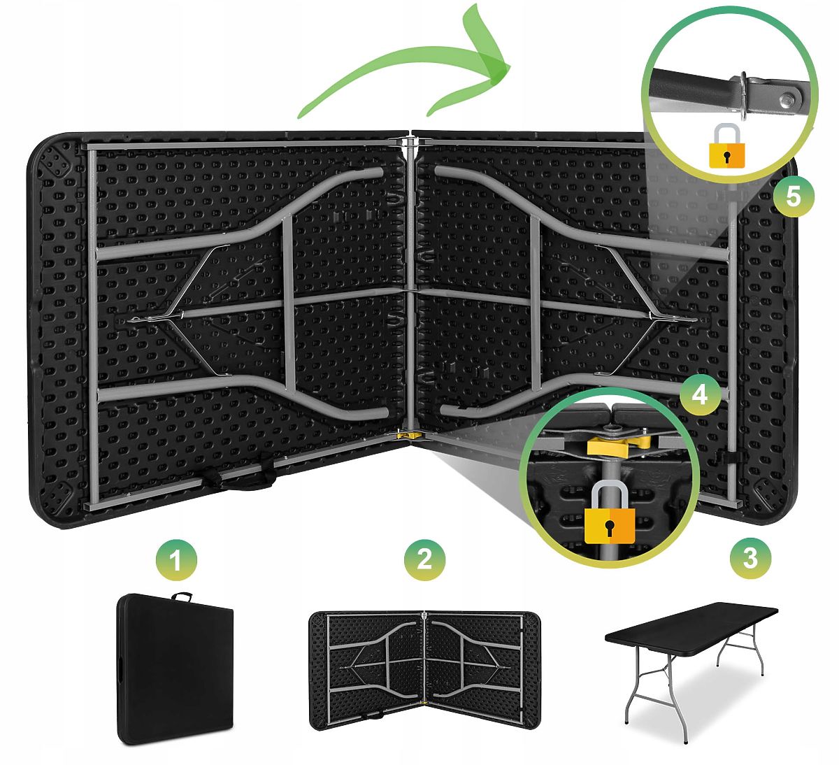Utilisation : extérieur, jardin, événements d'entreprise et familiaux | Couleur du siège/plateau : noir
