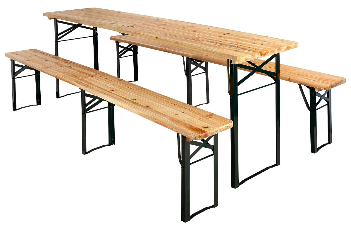 L'ensemble de jardin Lager, comprenant une table et deux bancs renforcés, fabriqué en bois de sapin durable et monté sur un cadre en acier avec revêtement en poudre, est un excellent choix pour les terrasses, les jardins à bière, les jardins privés, les événements extérieurs et les zones de barbecue. Ses bancs sont équipés de trois pieds, garantissant une stabilité et une résistance exceptionnelles, permettant une charge de chaque banc jusqu'à 300 kg, assurant confort et sécurité d'utilisation. La table a une capacité de charge maximale de 100 kg. L'ensemble complet allie robustesse et praticité, devenant une solution idéale pour ceux qui apprécient à la fois la durabilité et le design élégant dans leur mobilier de jardin.